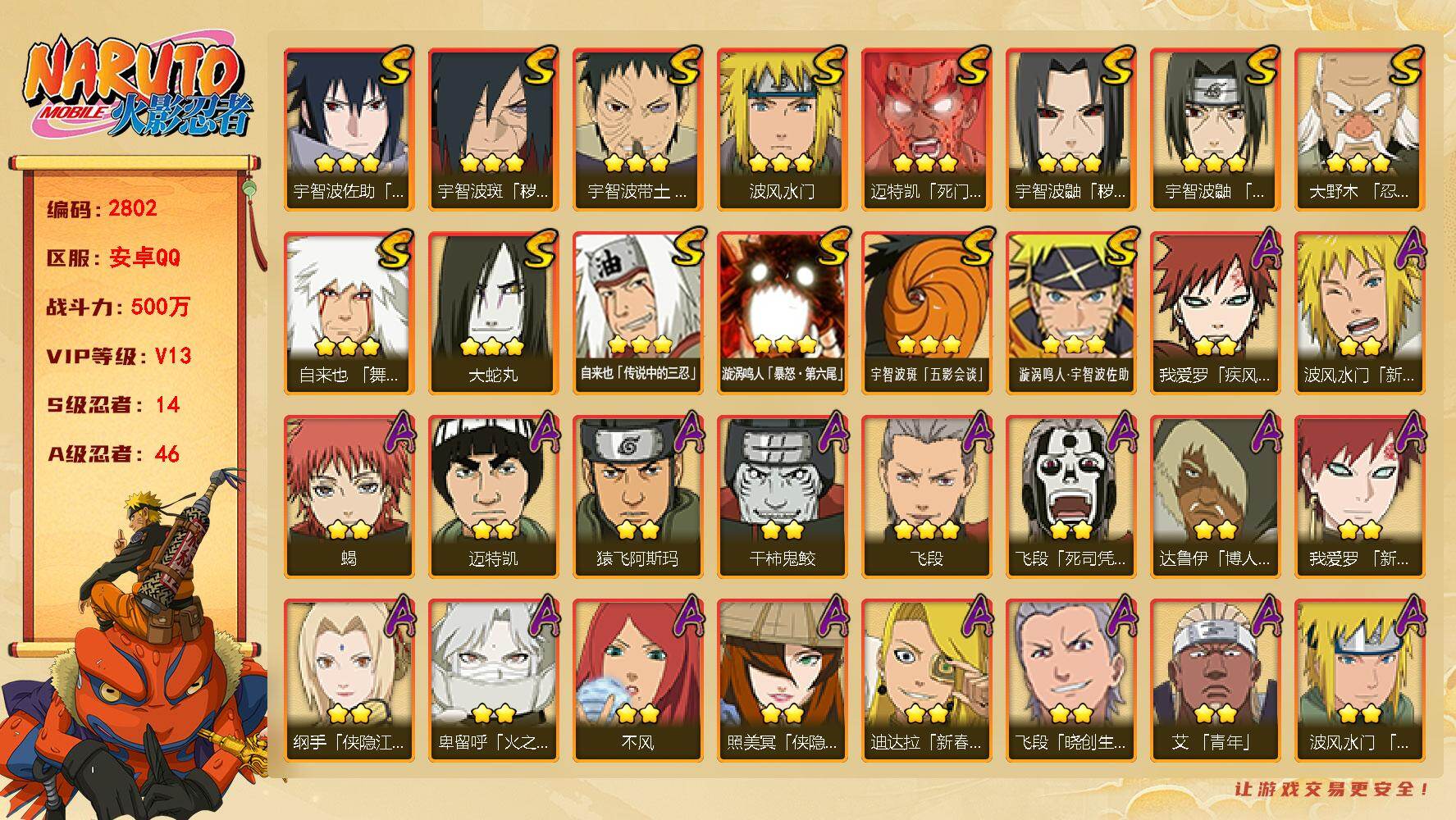安卓QQ♦20万金币号+百战水门+川自+百战佩恩+百战鼬+青水♦