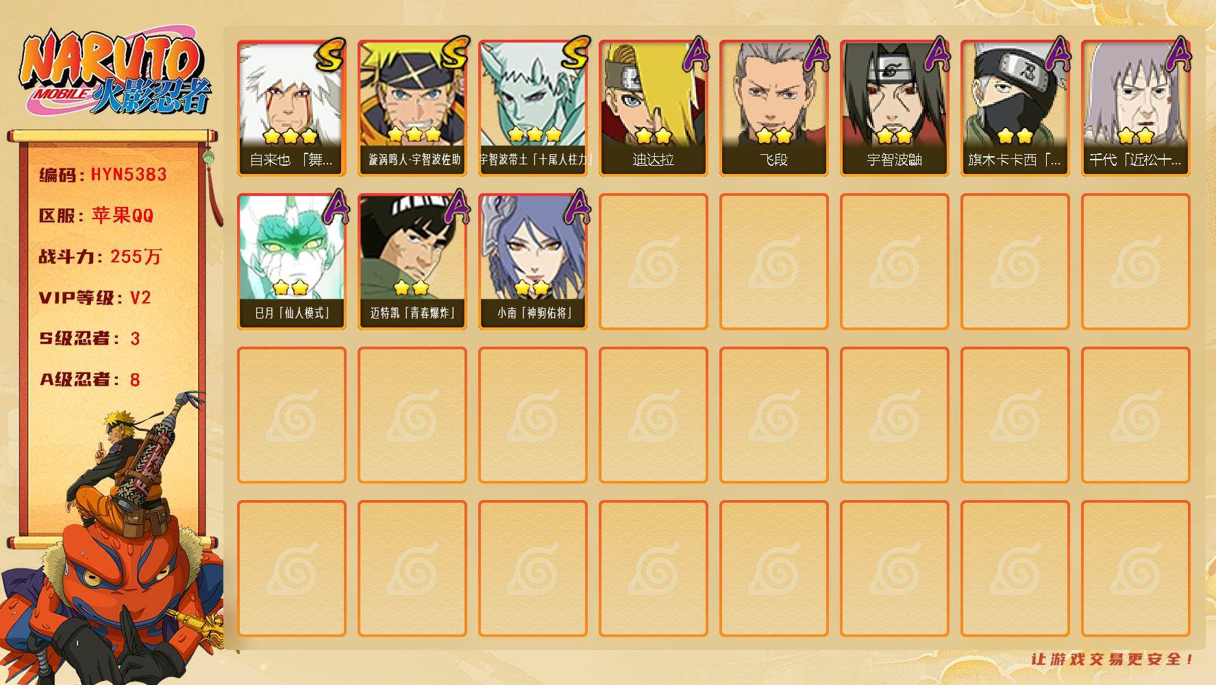 V2/战力255W/S忍3/A忍8/通灵兽12/舞之豪杰-自来