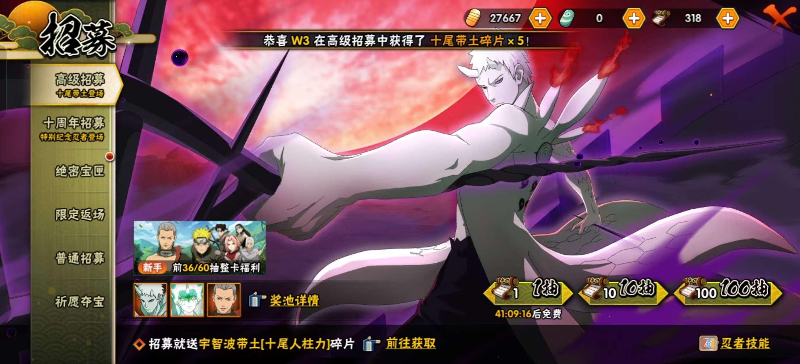 十尾仙人带土 金币 高招券 面麻 自抽号 看图大概500抽