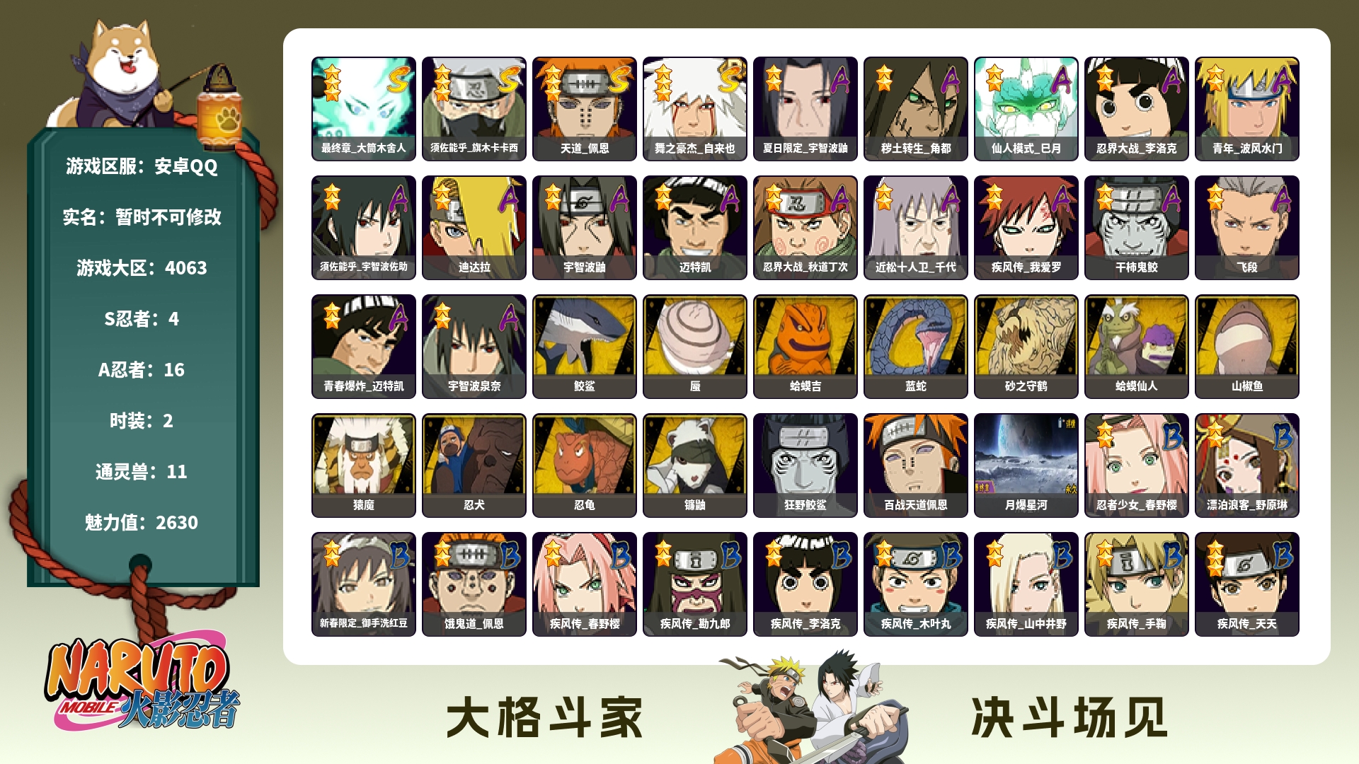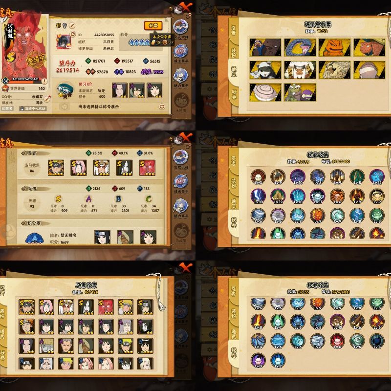 7S忍/13A忍/战力402W/V2/区服3579 【S忍者】宇智波佐助「漩涡鸣人」,宇智波斑「秽土转生·解」,自来也「舞之豪杰」,猿飞日斩「秽土转生」
