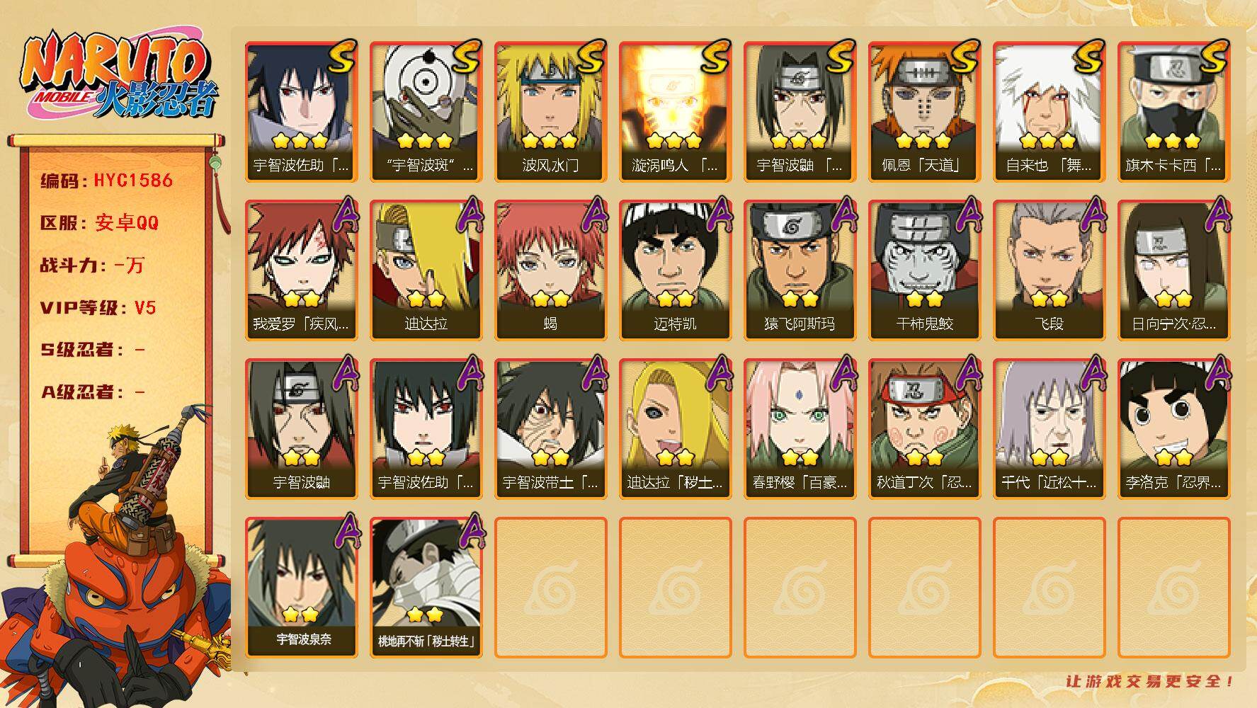 安卓QQ-店主推荐捡漏号-已购基础忍法帖-S忍者数:9-