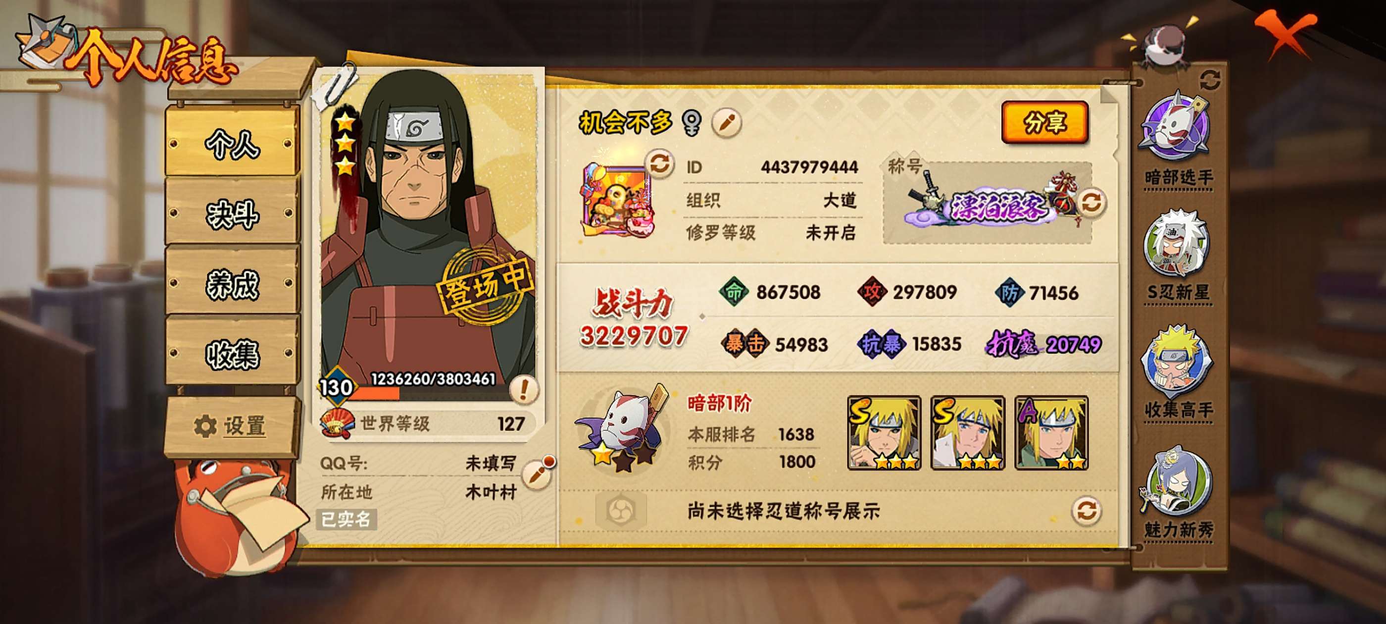 【创立柱间+秽土解斑】安卓QQ可二次 实名: 可修改