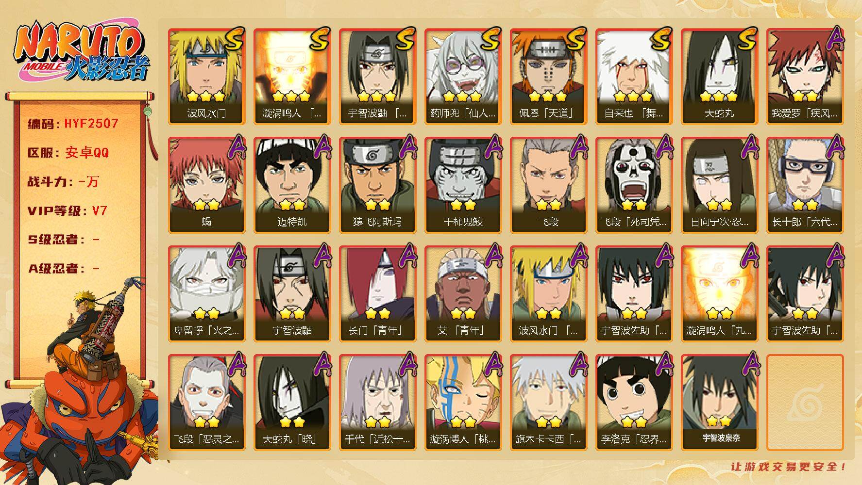 安卓QQ-可二次-近八百五十万战力-S忍者数:14- A忍