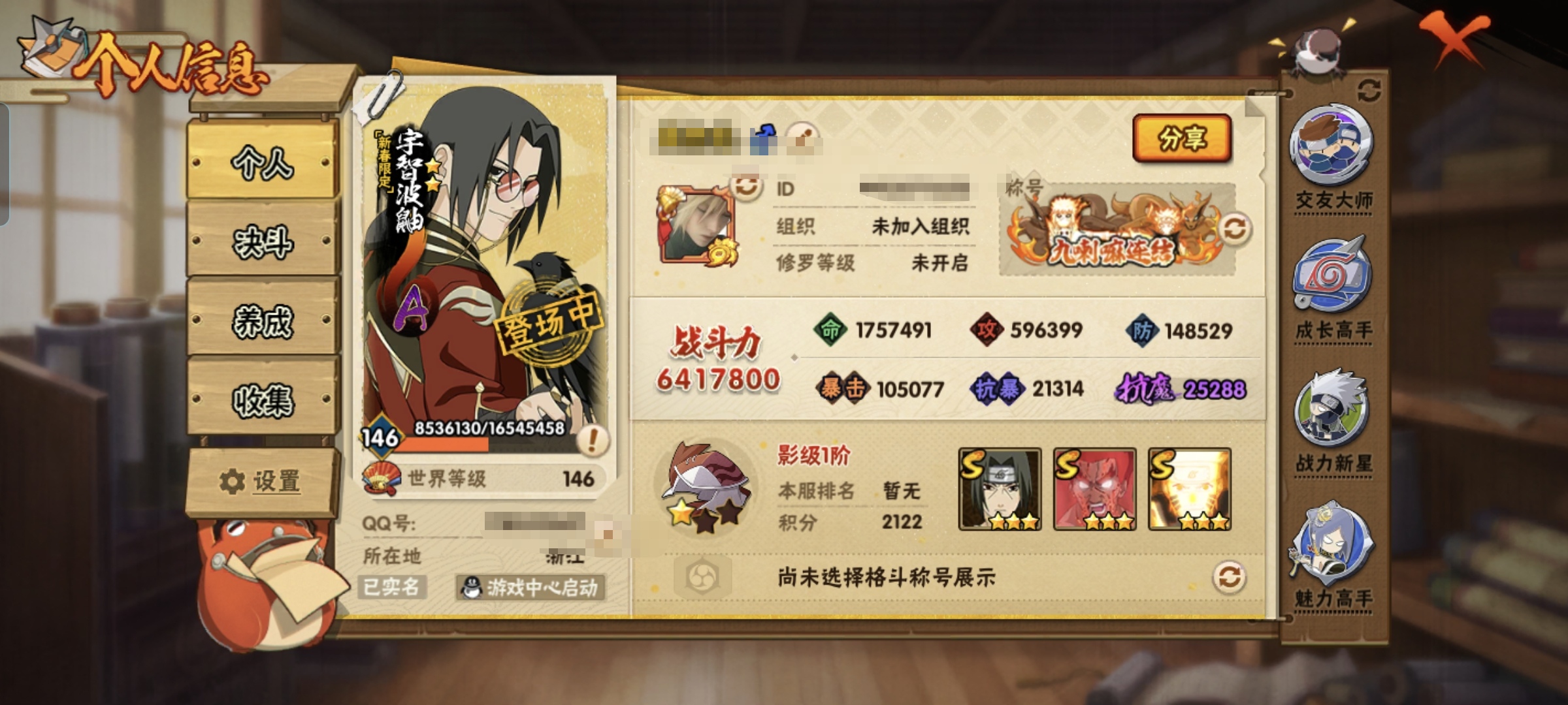 IOS/8S忍/27A忍/战力605W/V9/区服811 【S忍者】宇智波佐助「漩涡鸣人」,自来也「舞之豪杰」,大筒木舍人