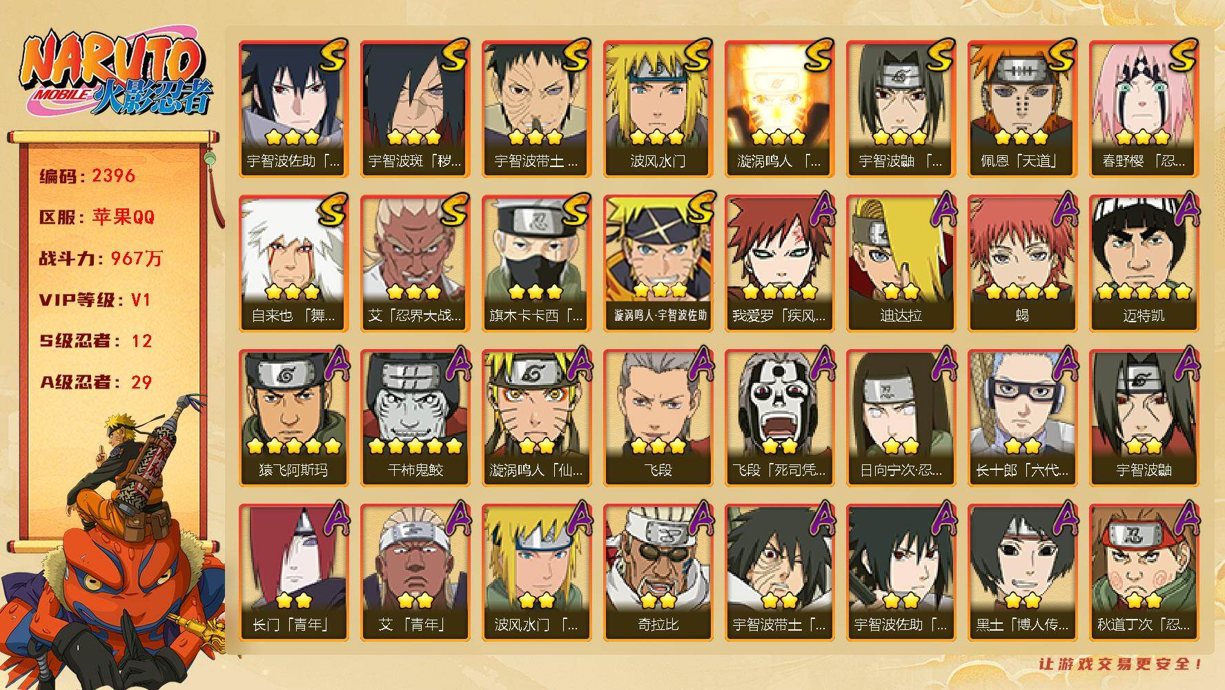 IOS/8S忍/26A忍/战力507W/V3/区服515 【S忍者】宇智波佐助「漩涡鸣人」