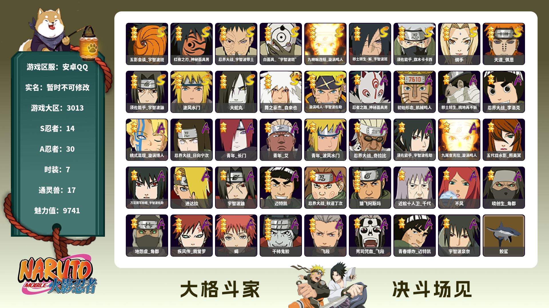 安卓qq-可二次实名-S忍者数:15- A忍者数:30-宇