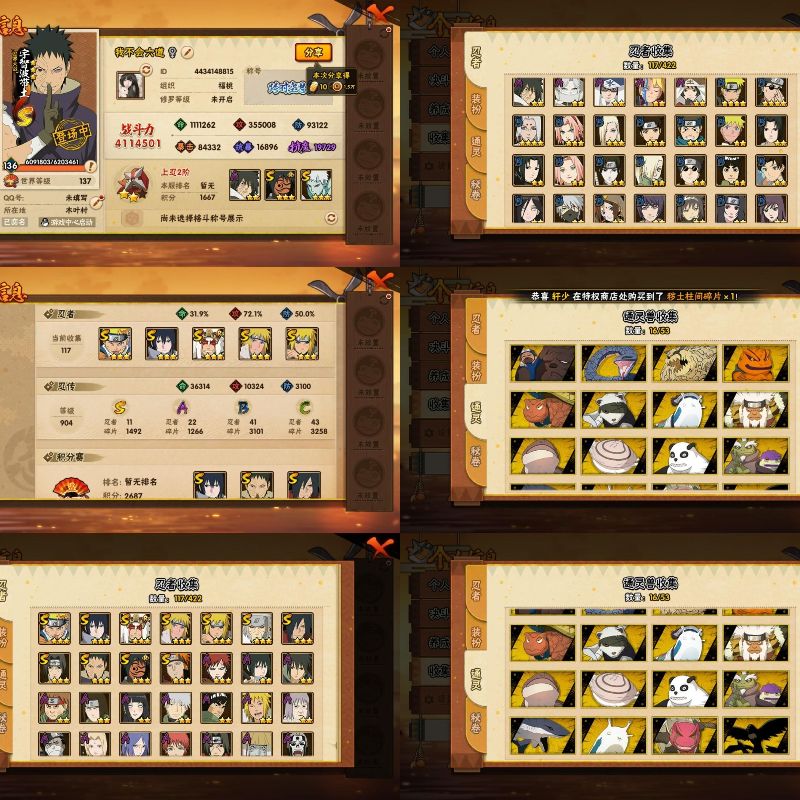(可免费转苹果)v8,843w战力,16S级忍者数-35A级忍者数,纲手62片