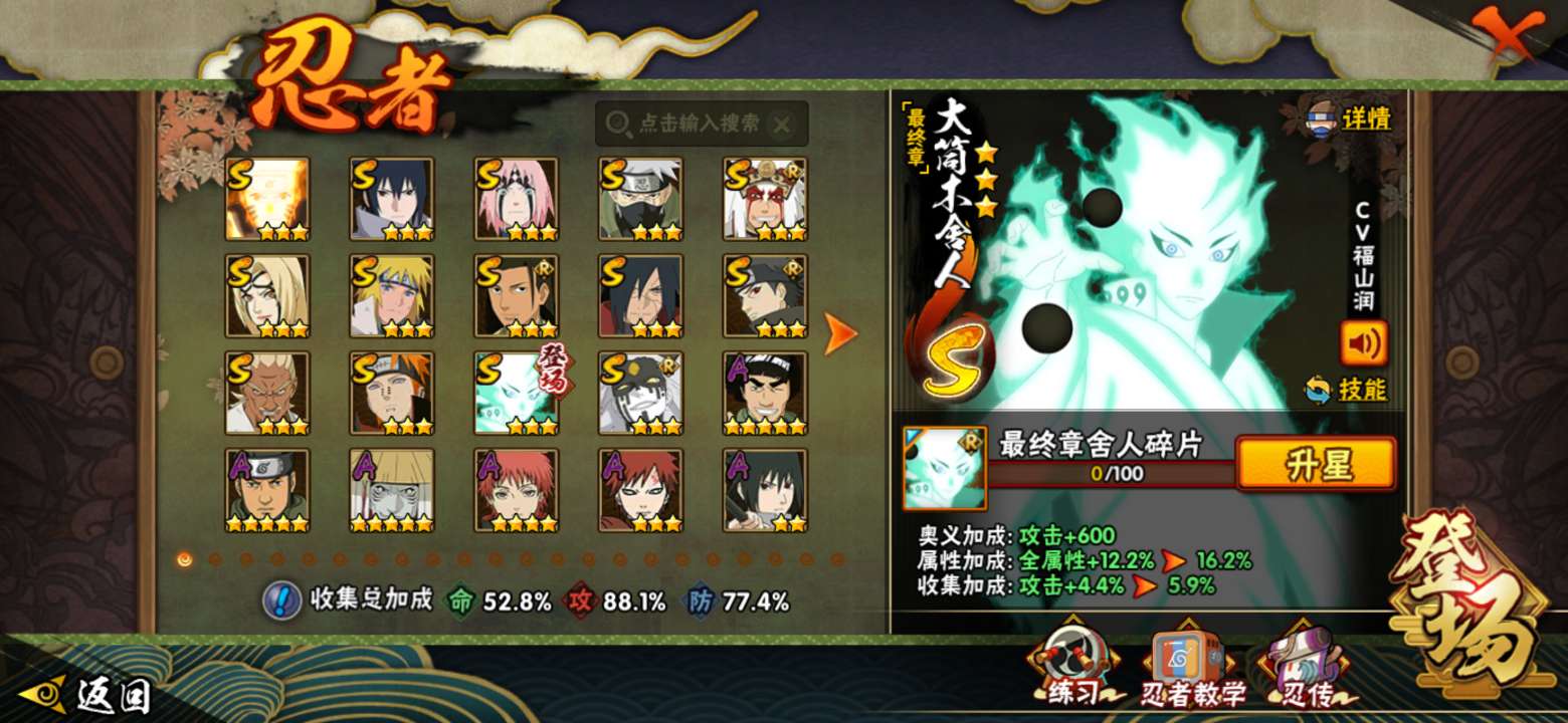 V10/战力807W/S忍15/A忍303星宇智波佐助「永恒万花筒」,3星宇