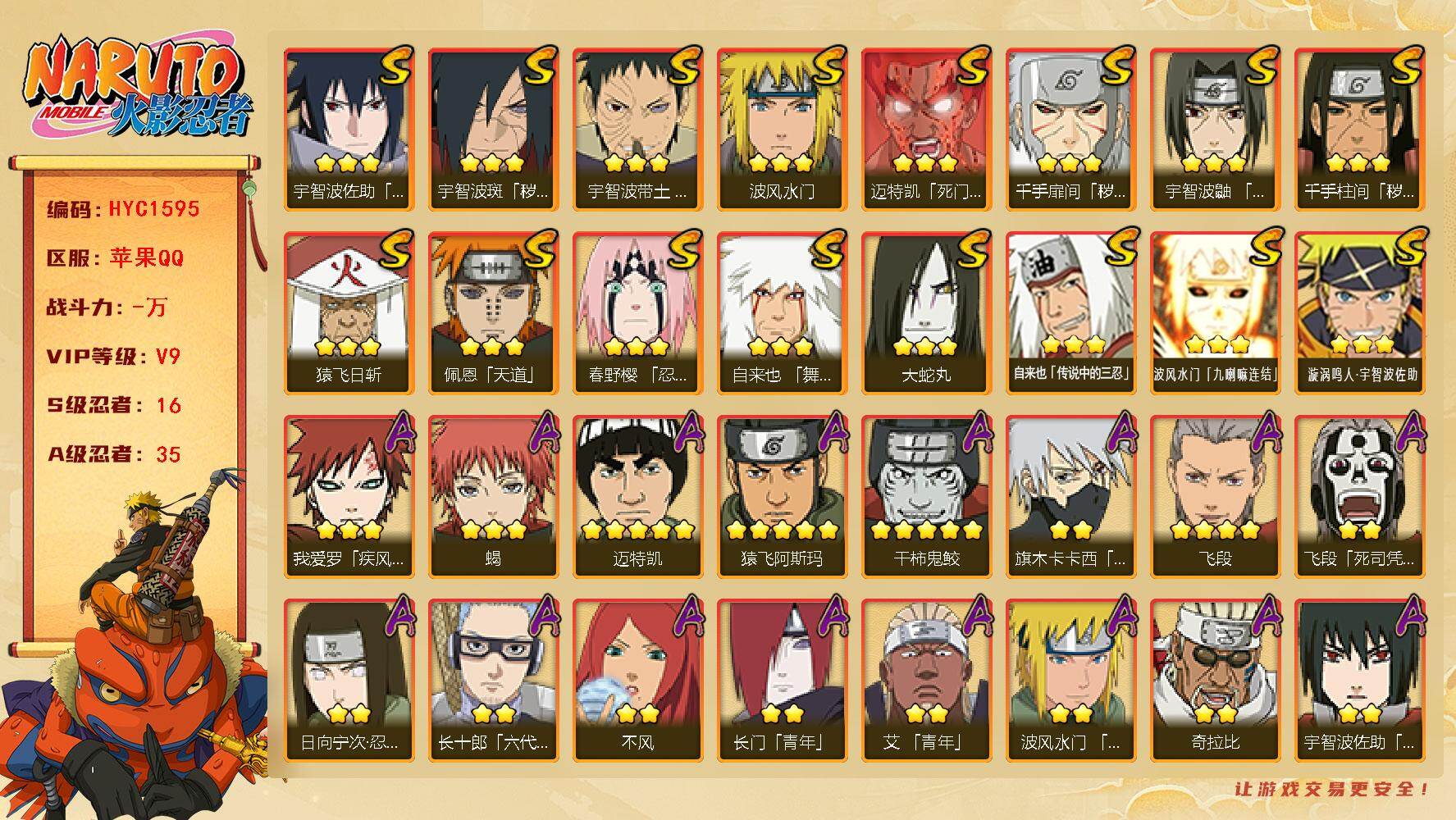 (可免费转苹果)v9 17S 30A 1153w战力 自来也83片 十尾带土5