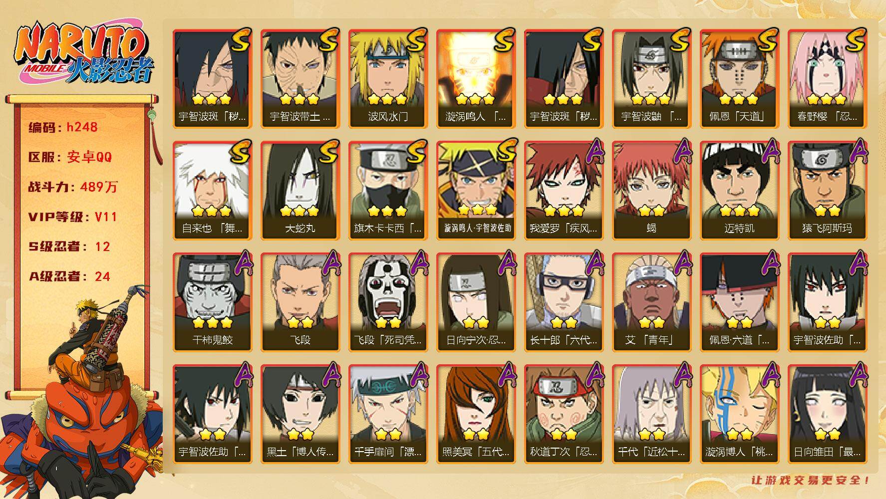 火影忍者账号10S28A忍者新春鼬秽土鼬青水等