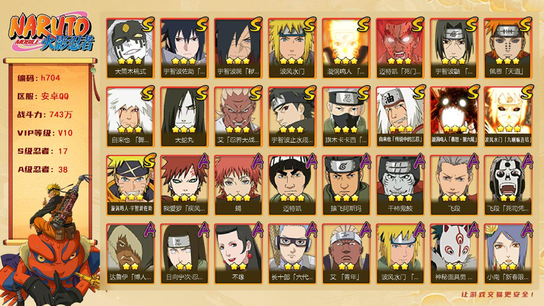 (可免费转苹果)v10,1176w战力,25S级忍者数-43A级忍者数。十尾带