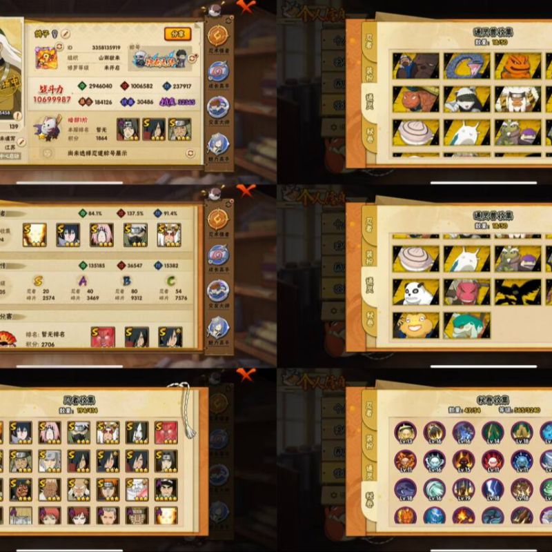 IOS/20S忍/40A忍/战力NaNW/请选择/区服581 【S忍者】艾「忍界大战」,宇智波斑「秽土转生·解」,宇智波佐助「永恒万花筒」,神秘面具男「红夜之刃」,春野樱「忍界大战」,大筒木金式,漩涡鸣人「九喇嘛连结」,大野木「忍界大战」,迈特凯「S门」,宇智波斑「木叶创立」,宇智波带土「忍界大战」,自来也「舞之豪杰」,旗木卡卡西「须佐能乎」,宇智波斑「秽土