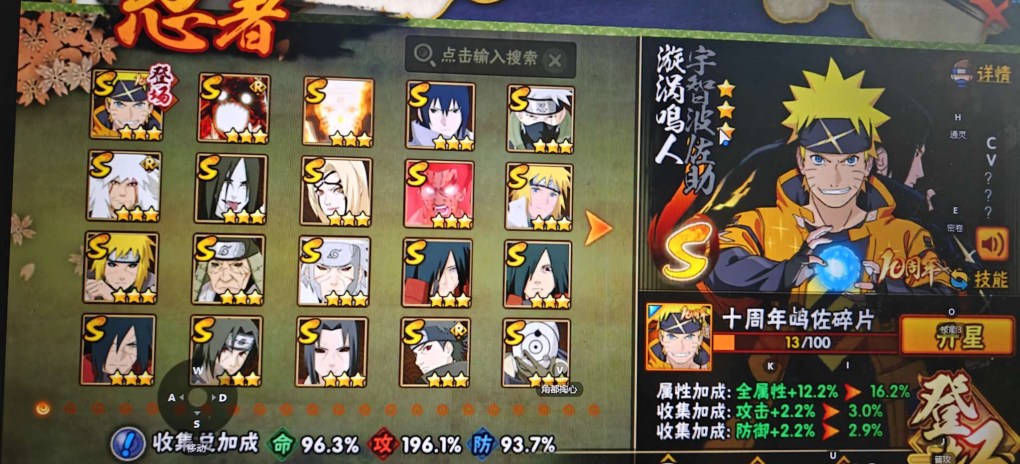 31S忍/45A忍/战力1591W/V11/区服2744 【S忍者】宇智波佐助「漩涡鸣人」,宇智波止水「须佐能乎