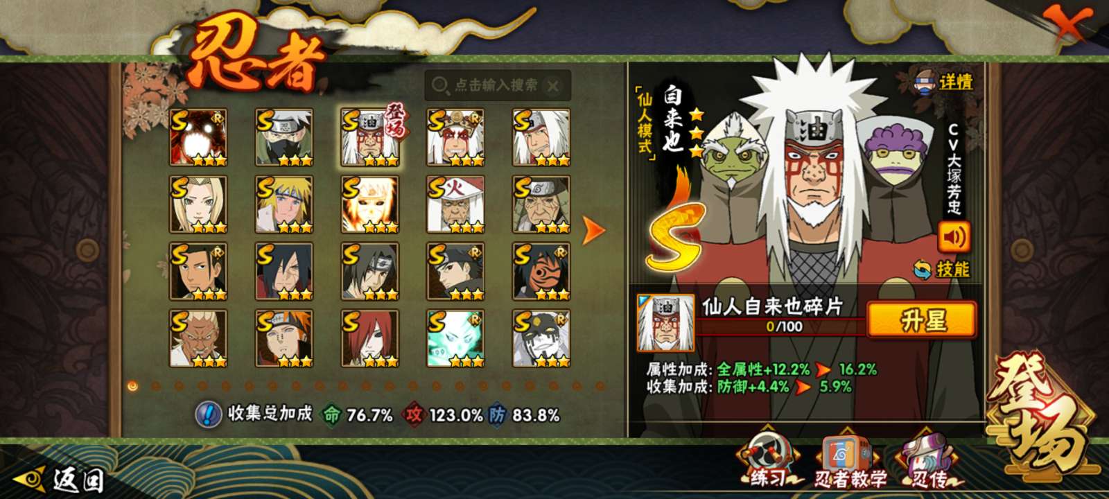V11 1281万战力 32S-55A 有熊猫 秽土半藏80片 舍人65片 L