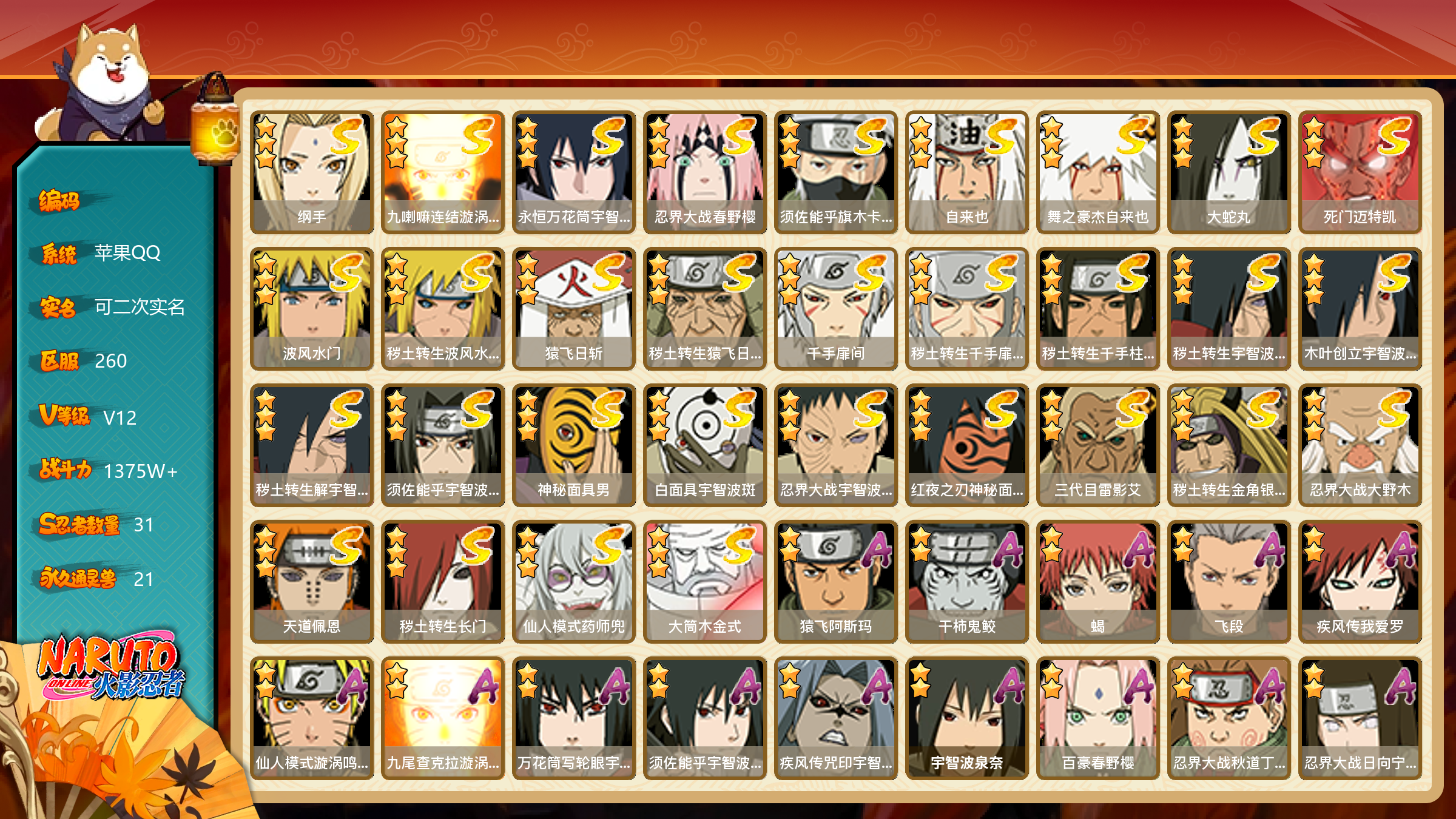ios QQ火影忍者账号 v12 很多忍者和皮肤