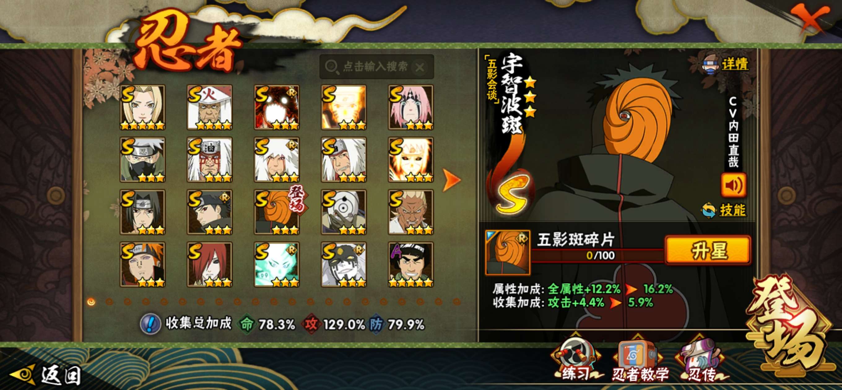 不墨迹,可小刀,六道带土加主场景,多氪金忍者,熊猫