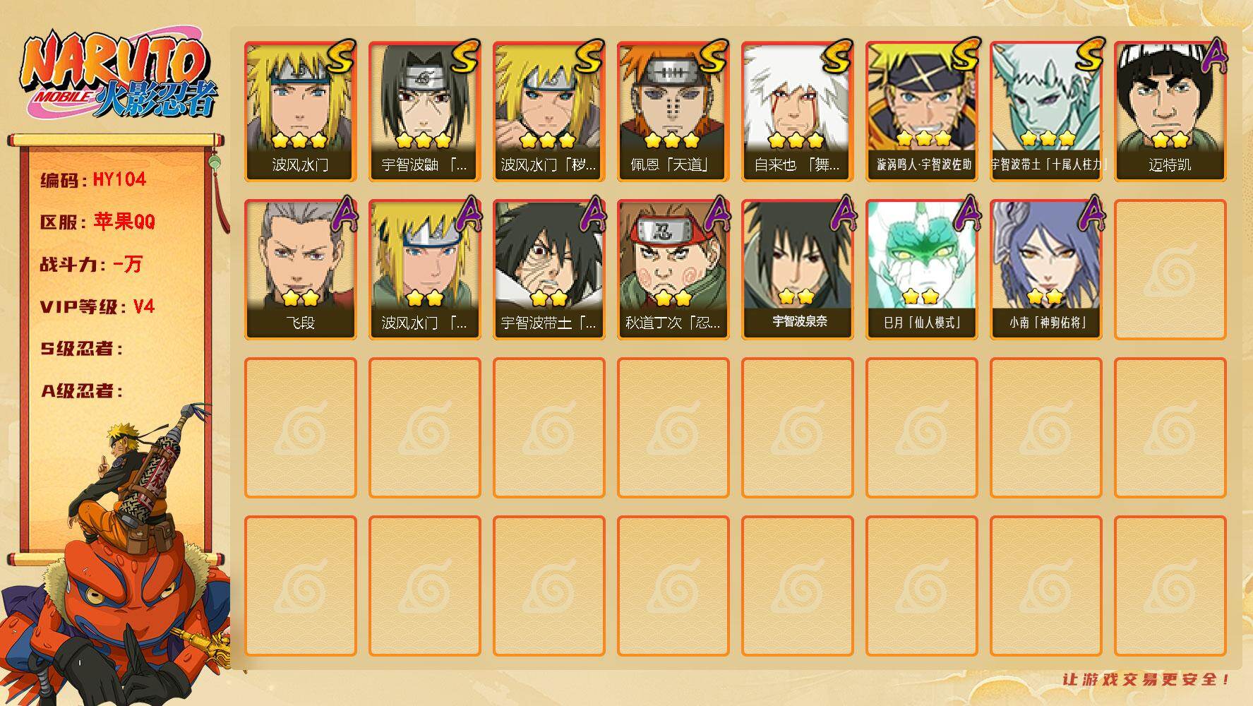 6s16a,有十尾和雷影还有五千金币,不玩了出