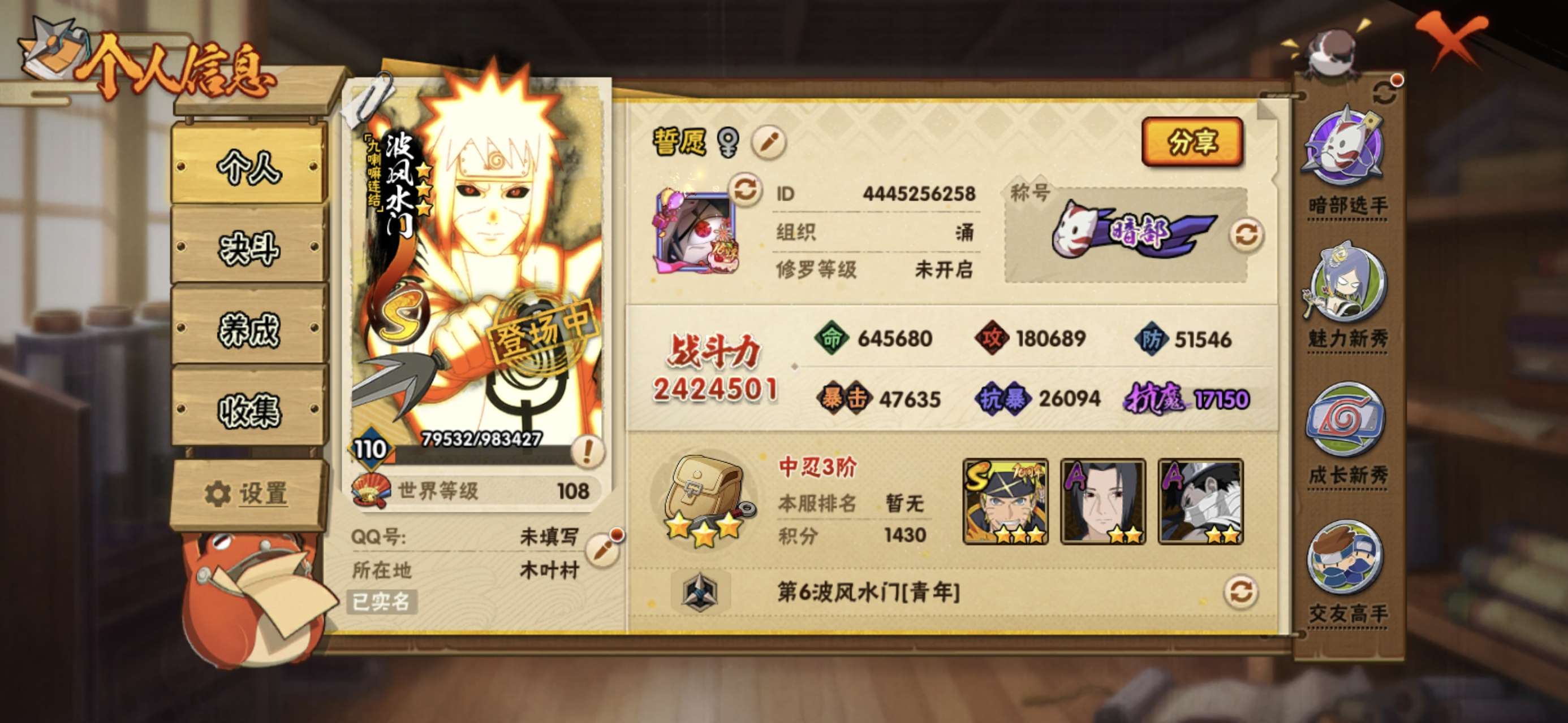 有泉奈佩恩自来也鼬鸡翅巳月带土76片死二75片副本还有几千金币还有角度没开