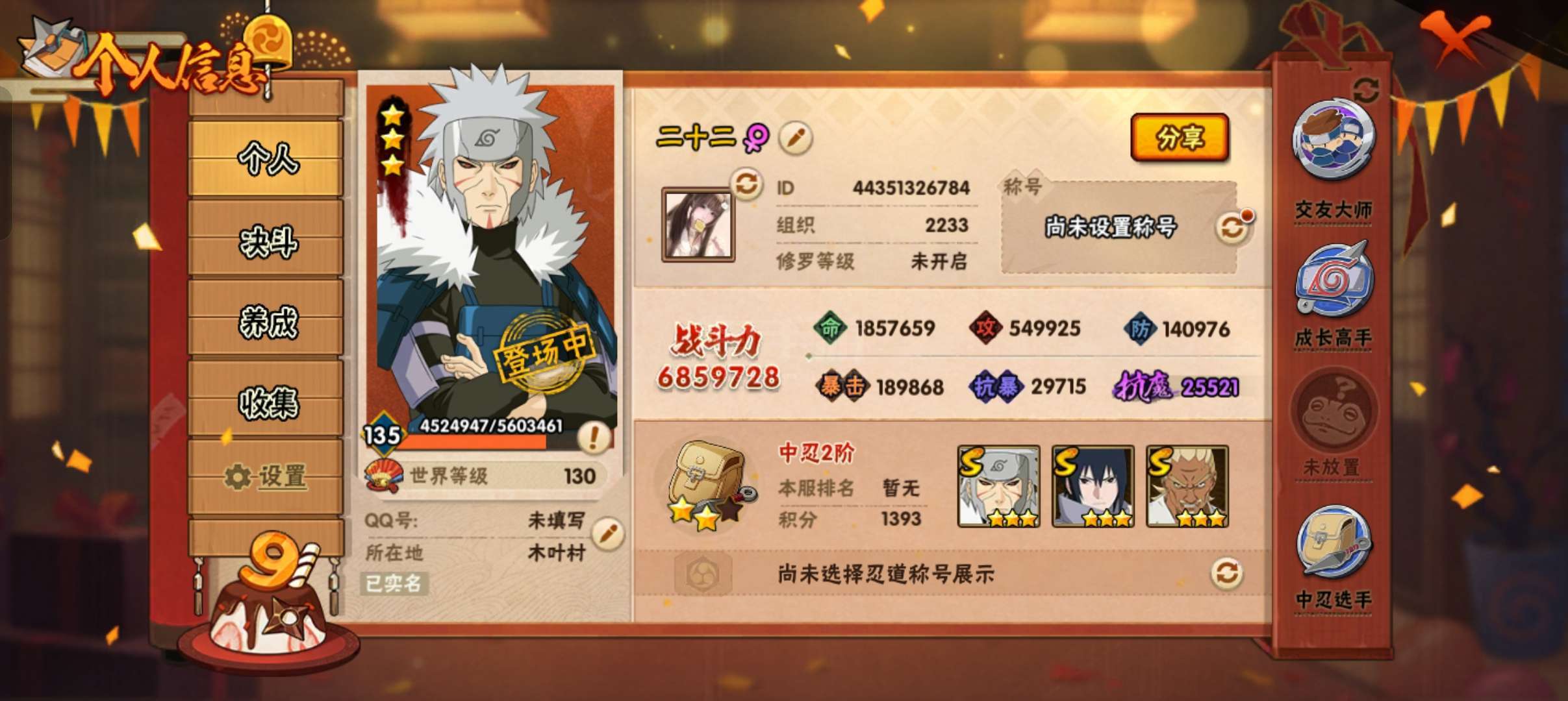 秽土鼬+九喇嘛+忍战带土+2万金币+川自+大蛇丸+百战佩恩+12A