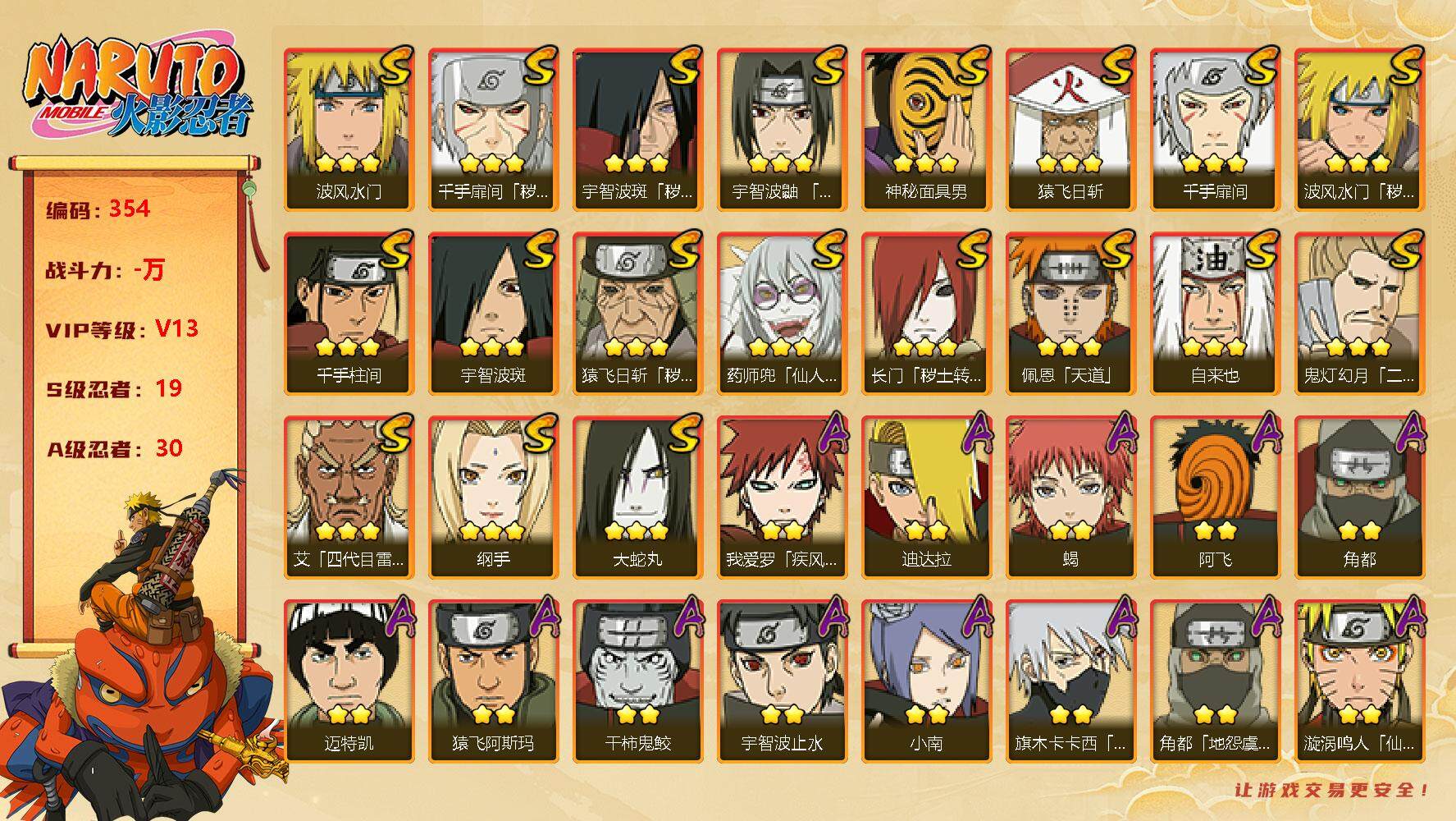 【19s30a长门 猿飞日斩 水门 扉间 斑 鼬】:19S级忍者数-30A级忍
