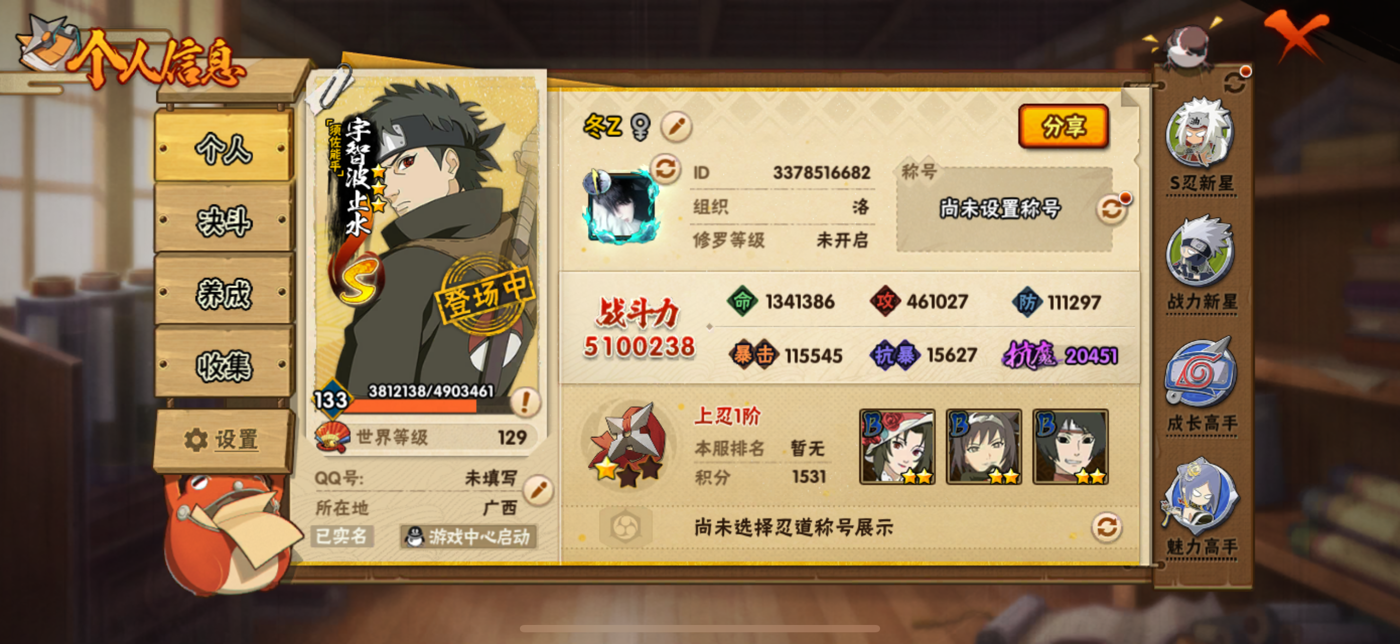 安卓QQ v14+1700万战力 27S 35A 帮榜前十战力 2.5万金币高招随便拿!双区号老忍者随便玩!
