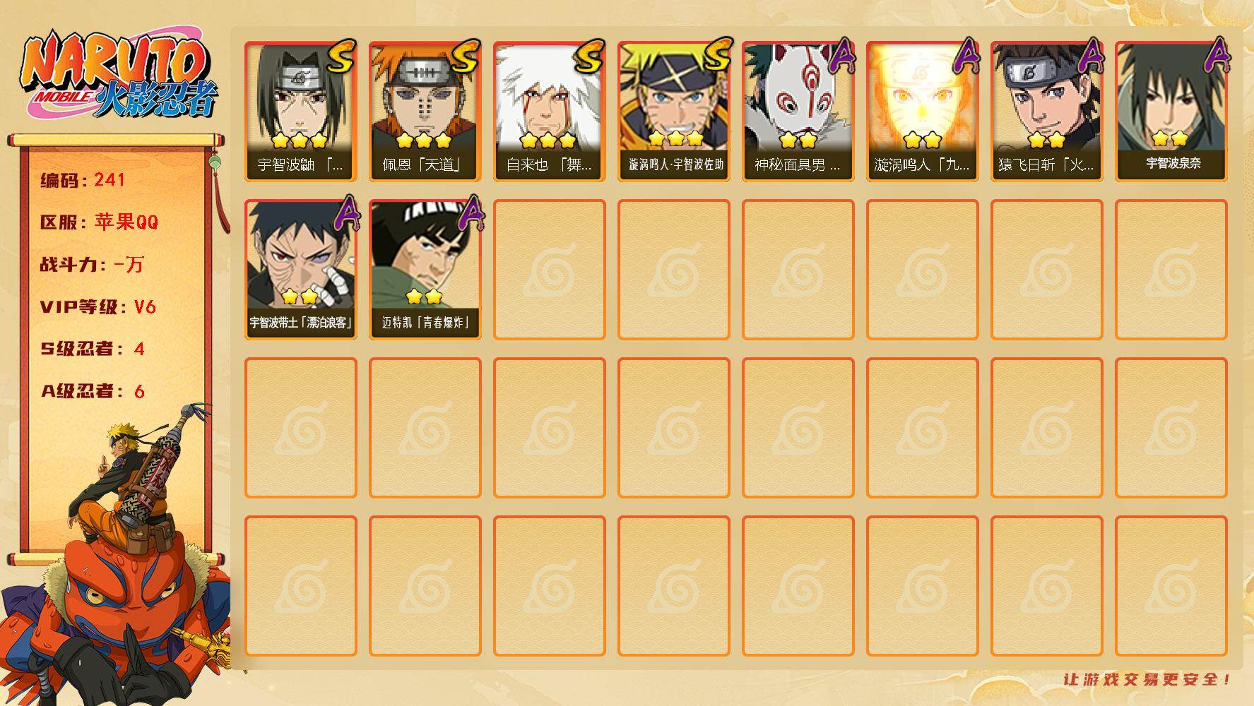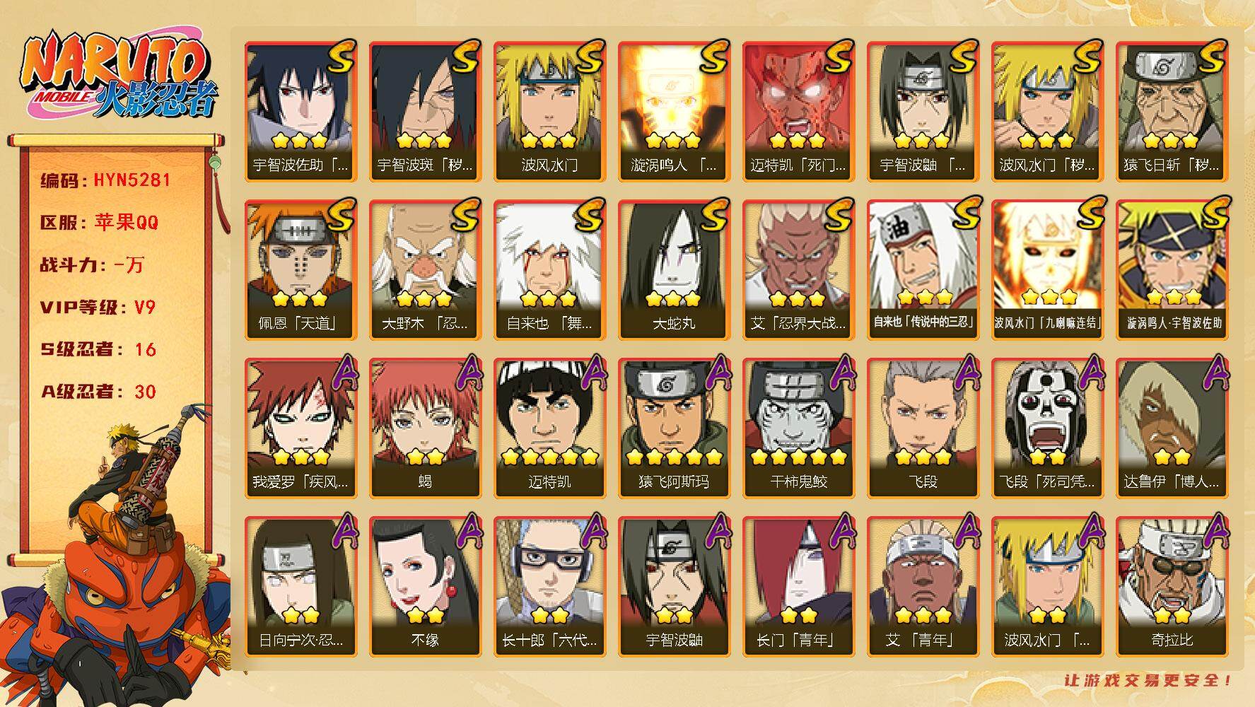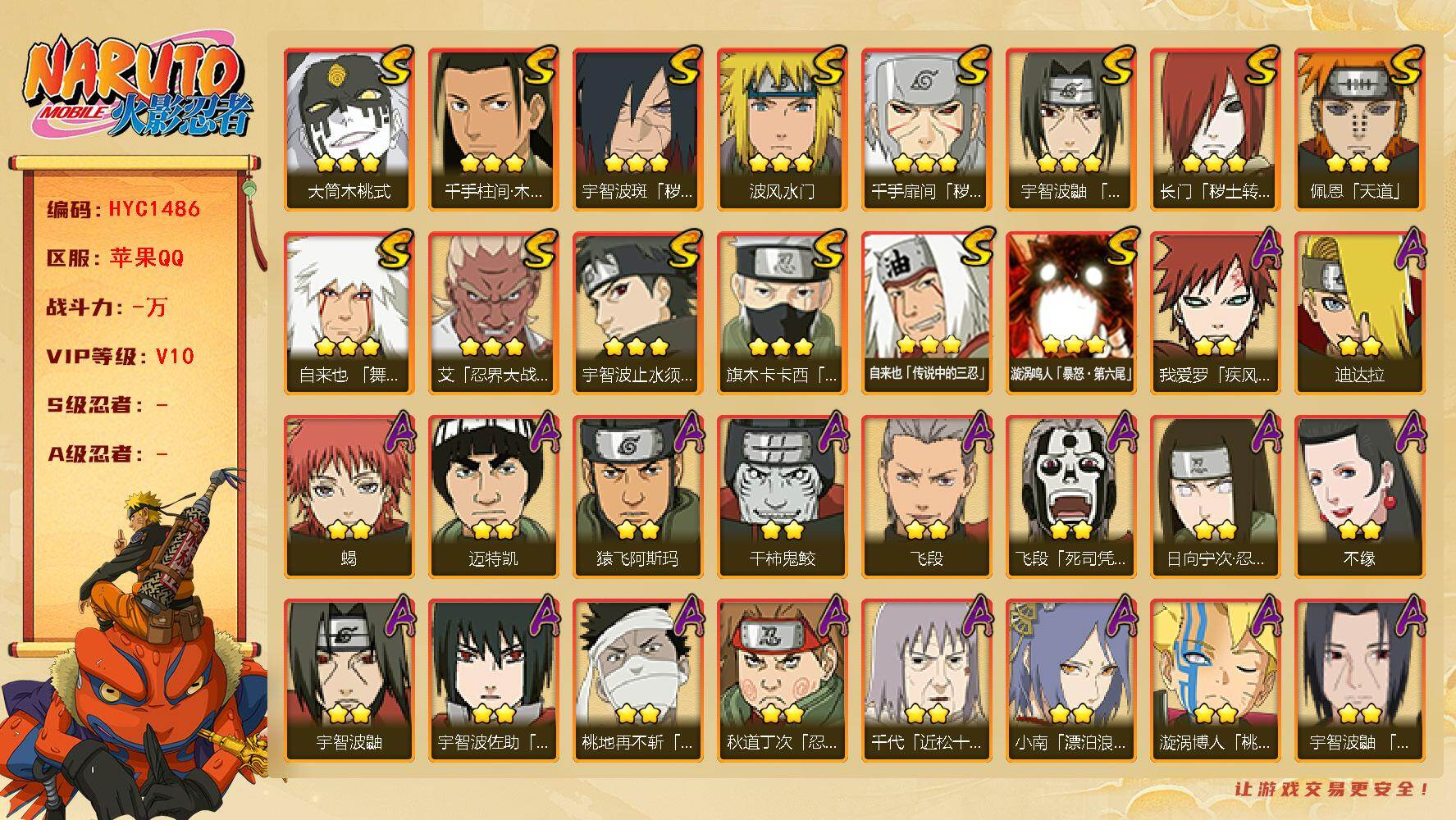 【可转苹果/263w战力十尾3S+10A】3S级忍者数-10A级忍者数【S级