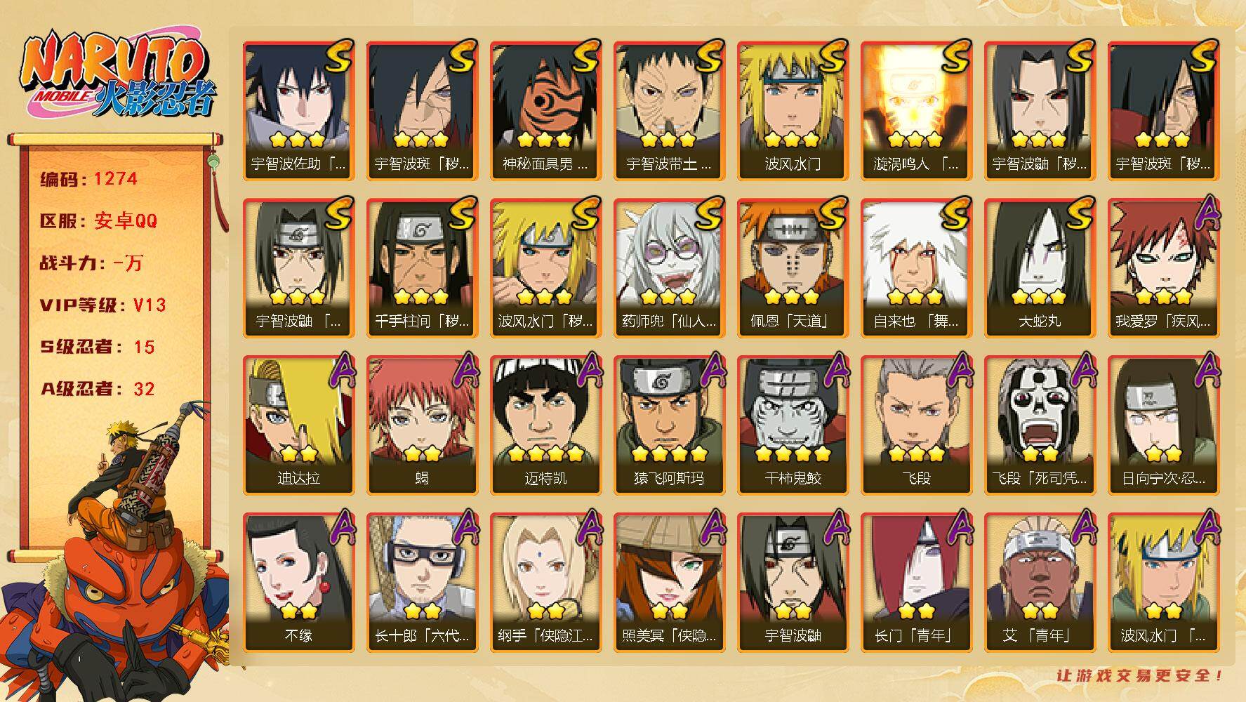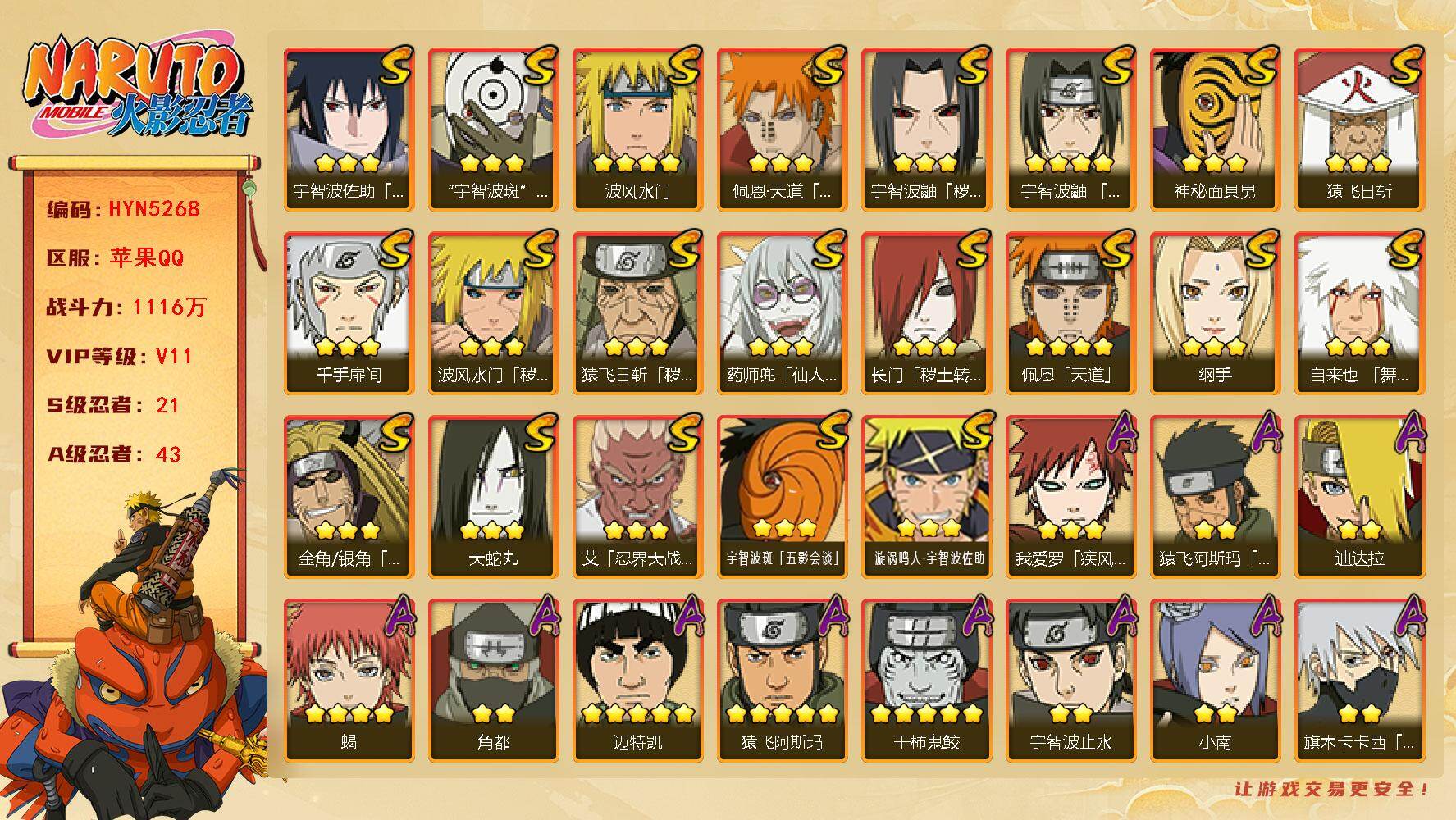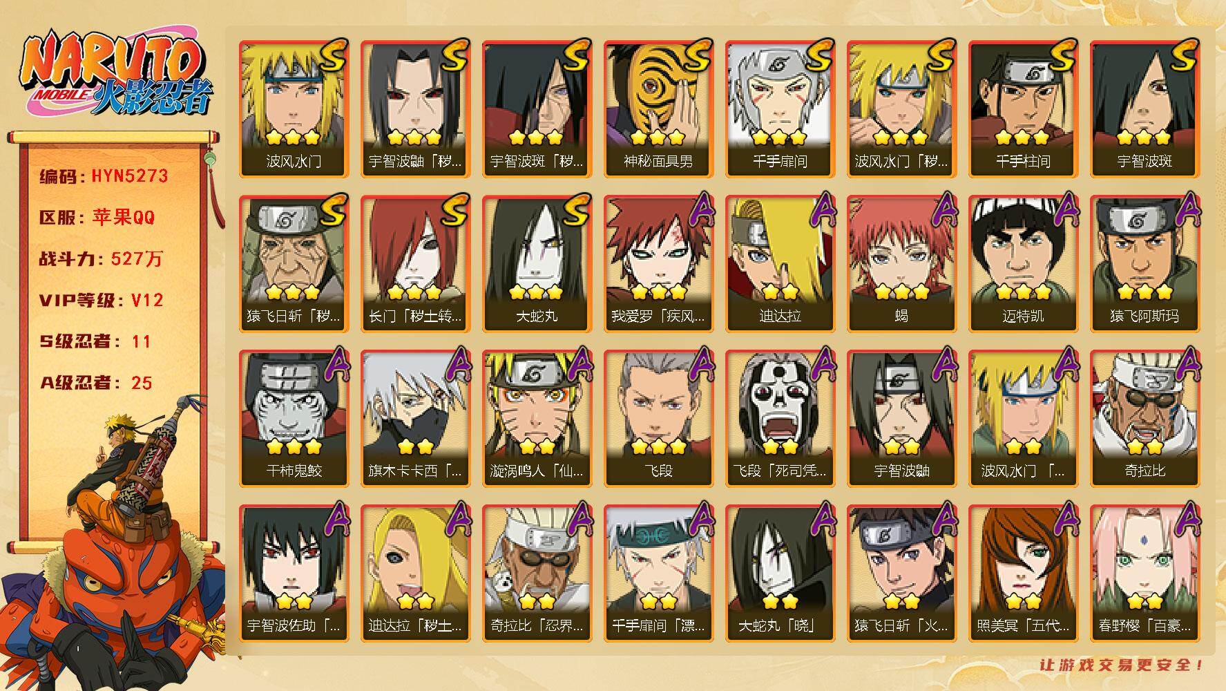 【可转苹果/263w战力十尾3S+10A】3S级忍者数-10A级忍者数【S级