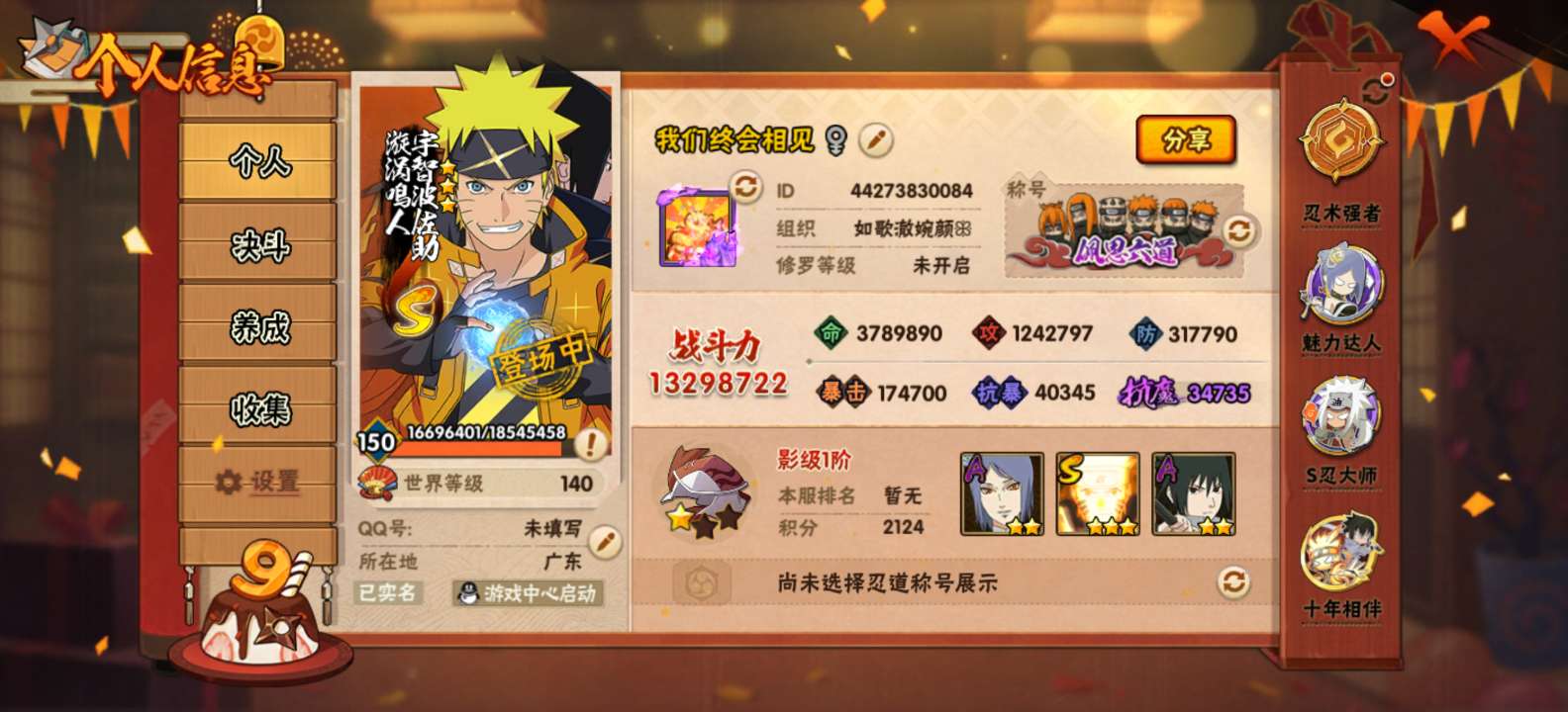 【安卓】仓鼠金币715号,150861金币,38张高招卷,1990限时点券,火影忍者手游QQ区,蜀面