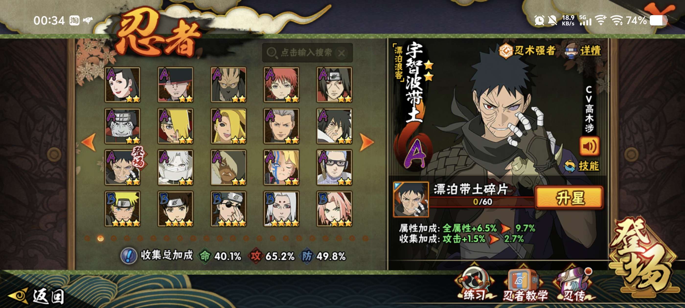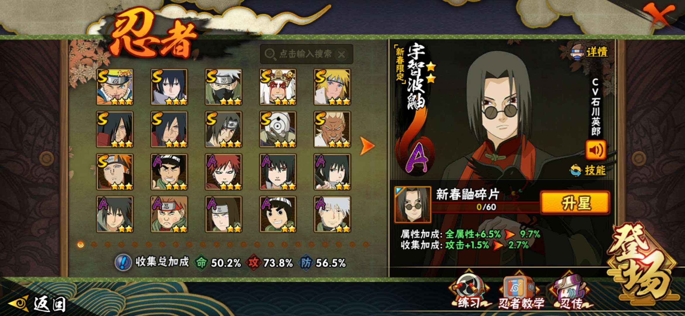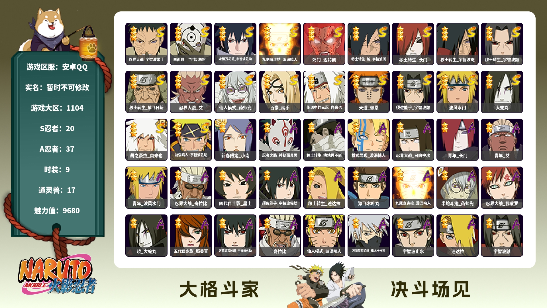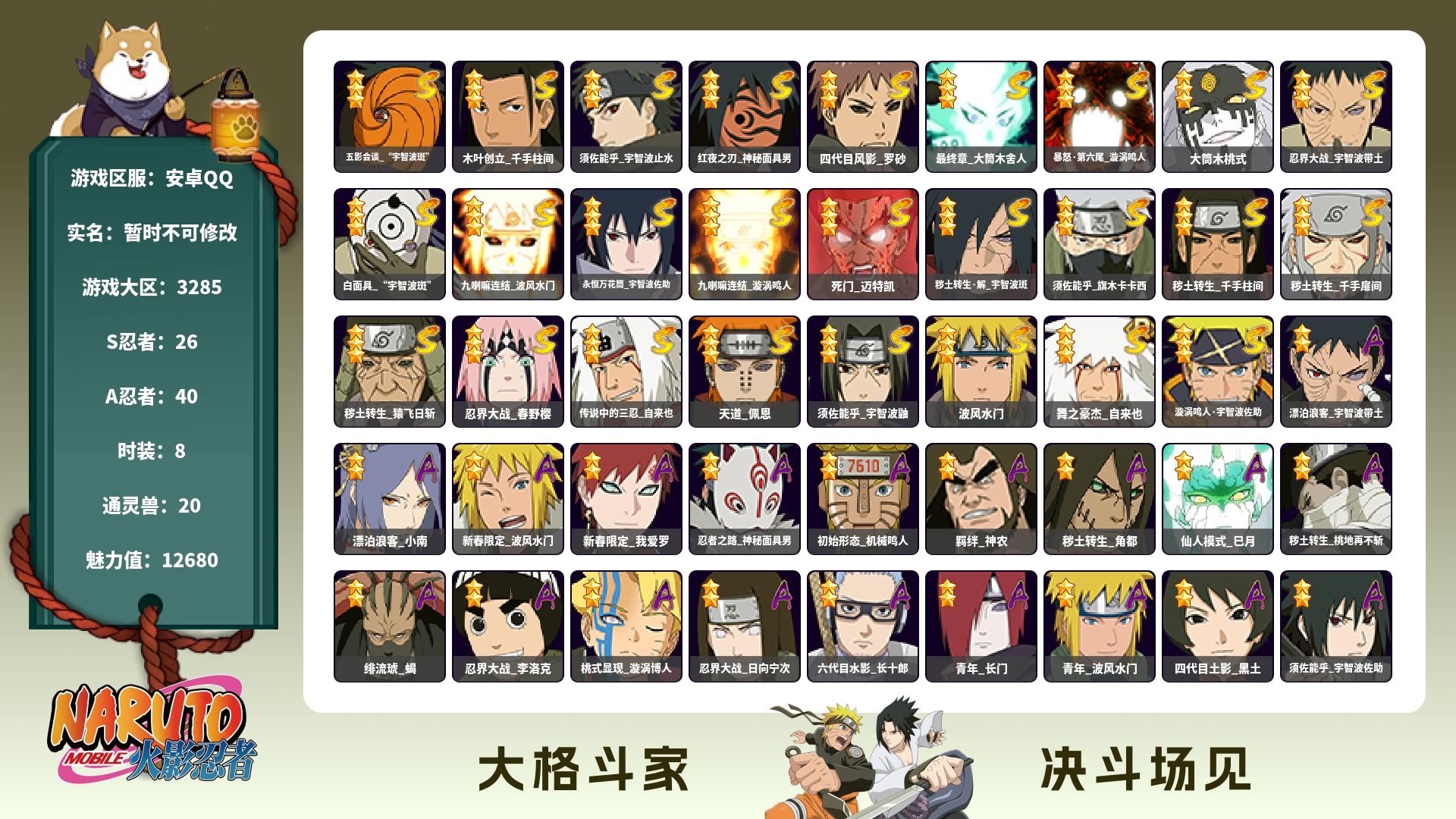 角色等级138 金币800 战斗力3939148 S忍10 A忍26 7 段位中忍