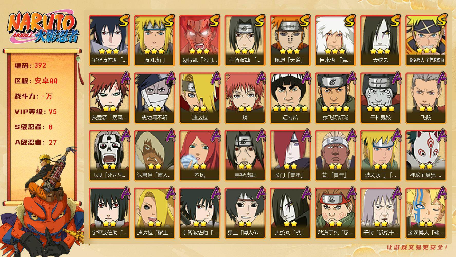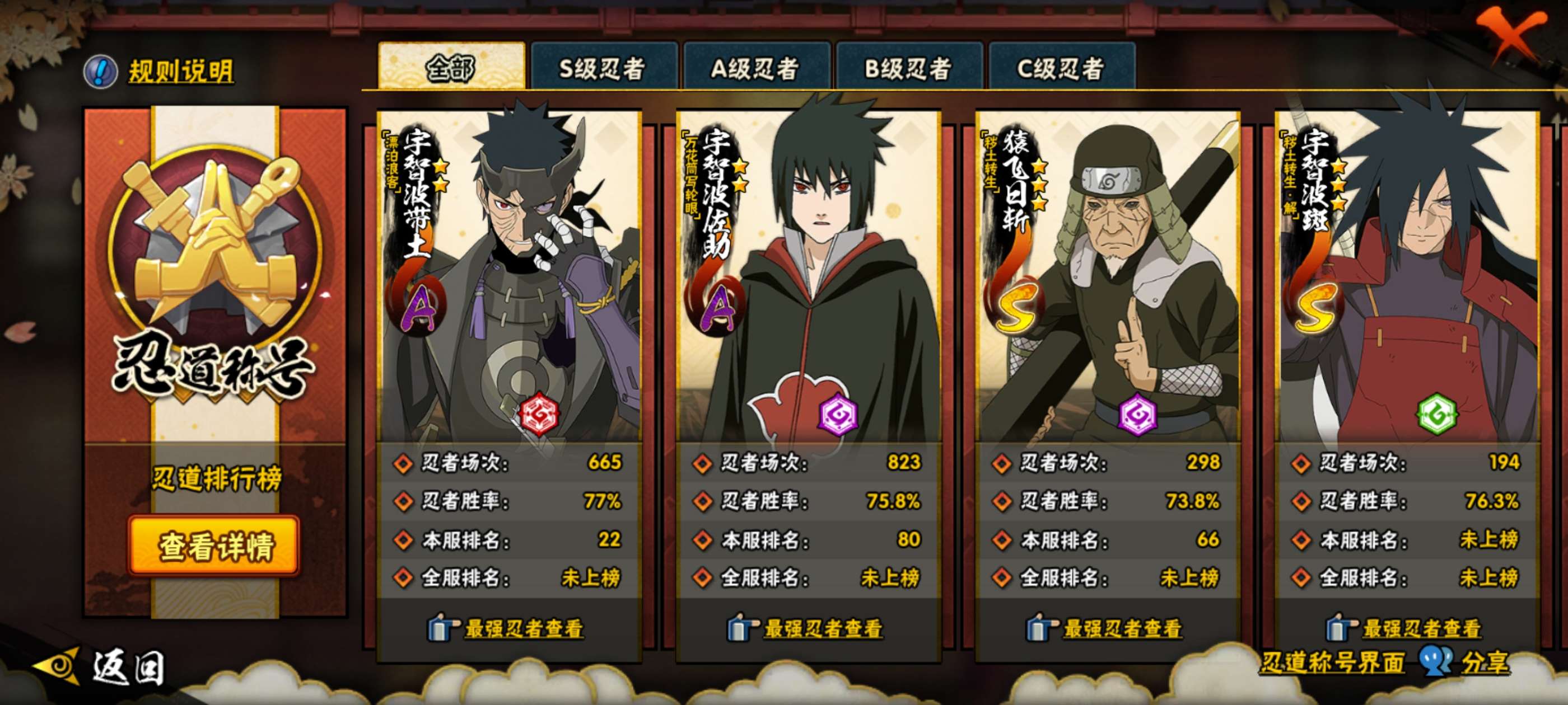 8S级忍者数-27A级忍者数【S级忍者】:宇智波鼬「须佐能乎」(3星),自来