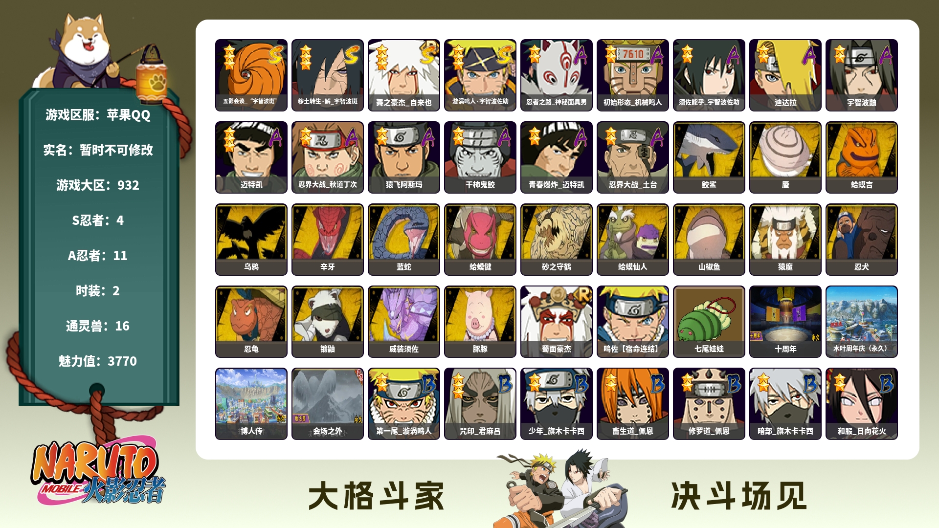 (可转苹果)410w死水破面绿牛8s忍战卡卡西15a战力41