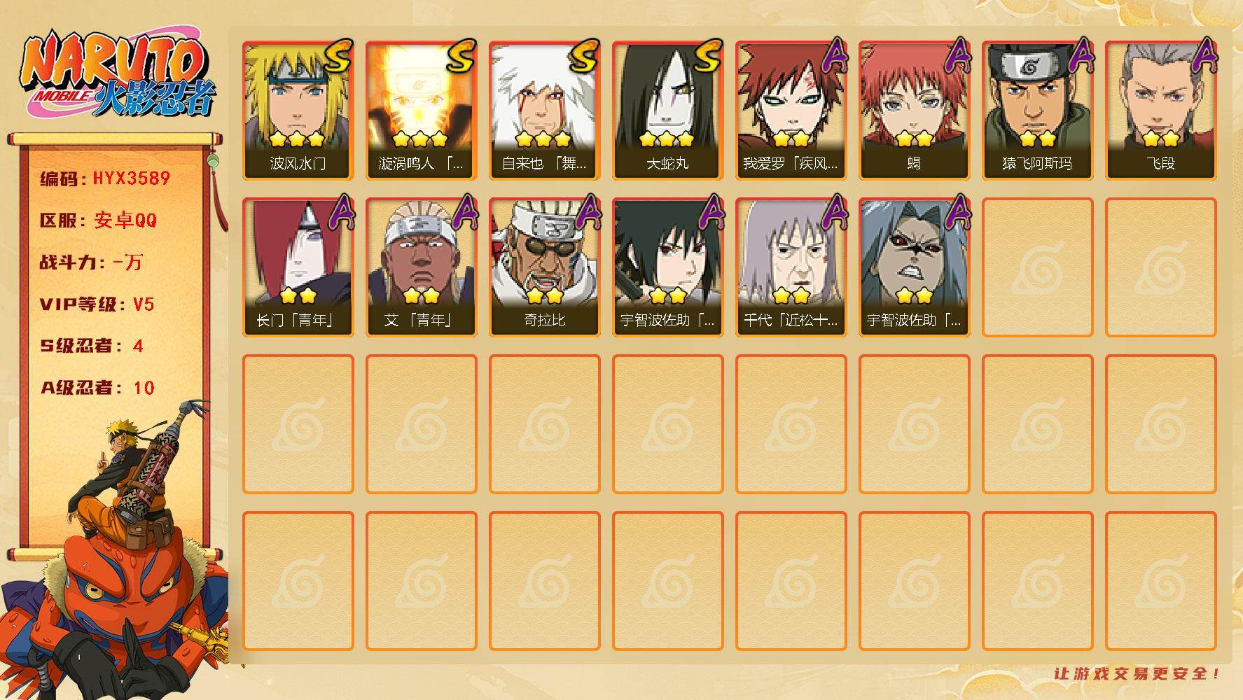 296W战力五影斑解斑4S+1个198直购A/11A战力29