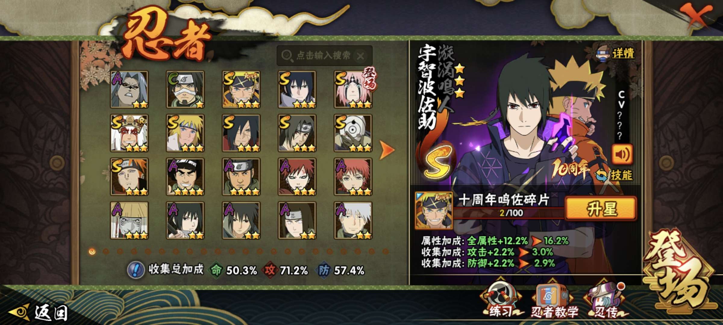 V9/战力1195W/S忍17/A忍44/2星大野木「侠隐江湖」