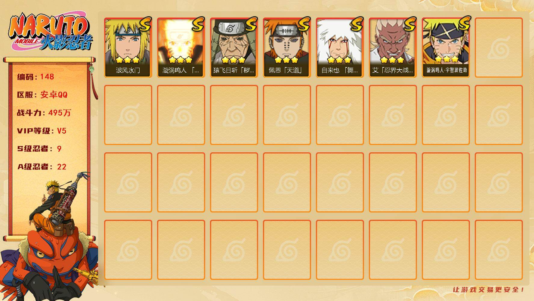安卓Q-可二次-V5-370w战力-6S忍-18A忍-角色等级148