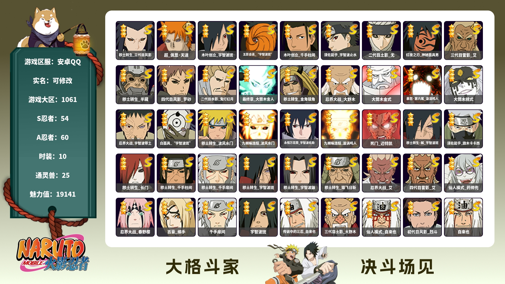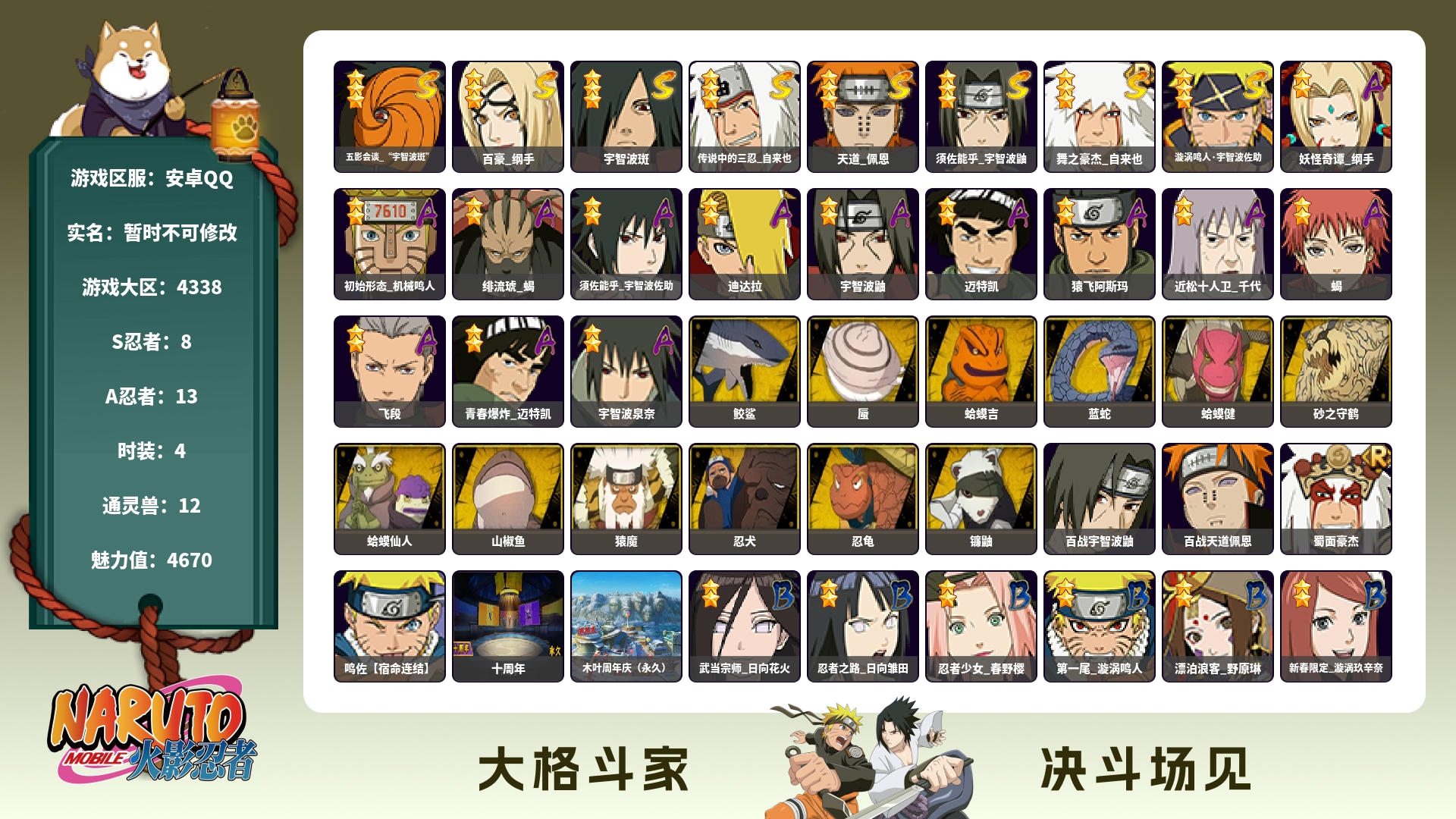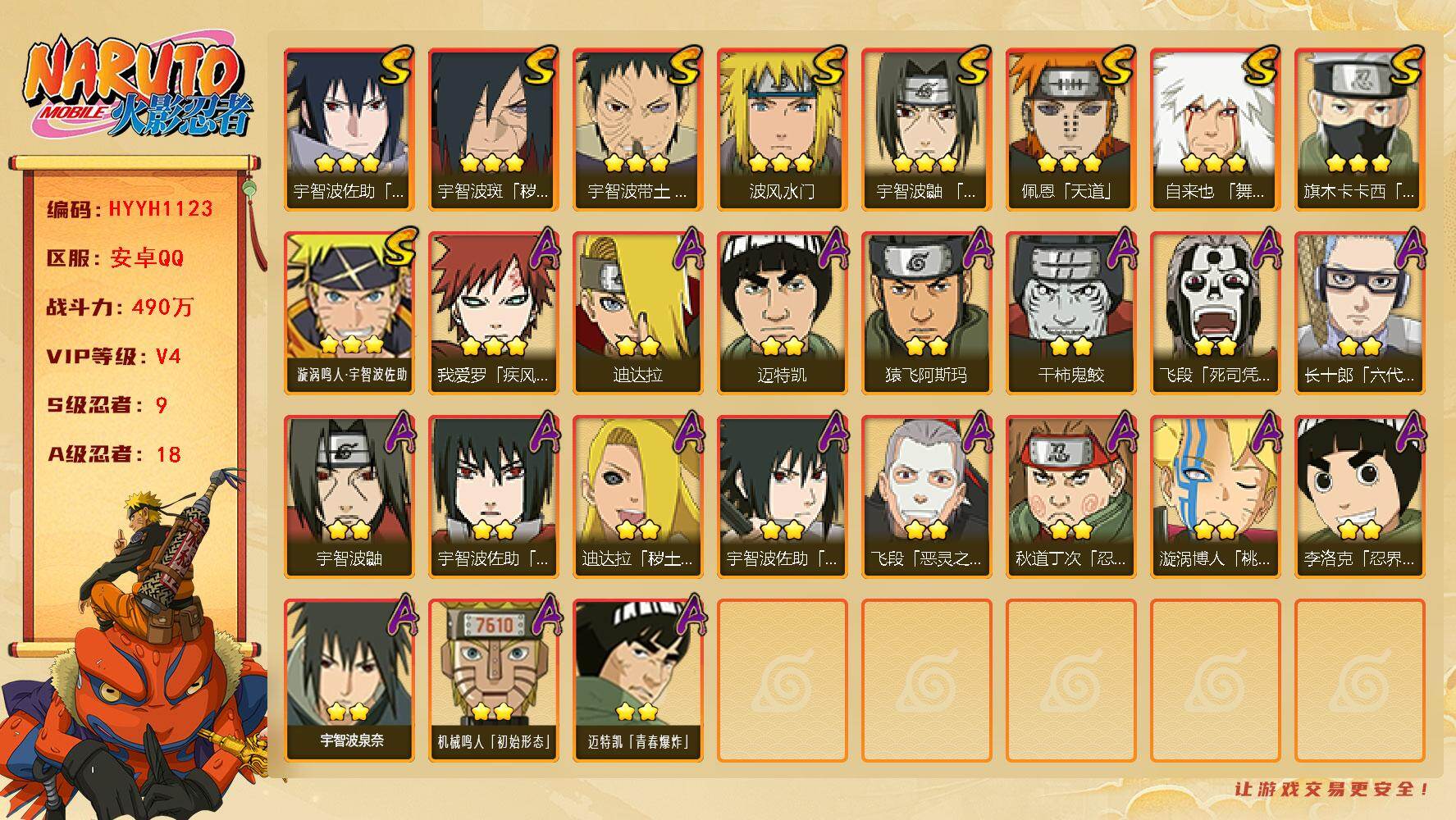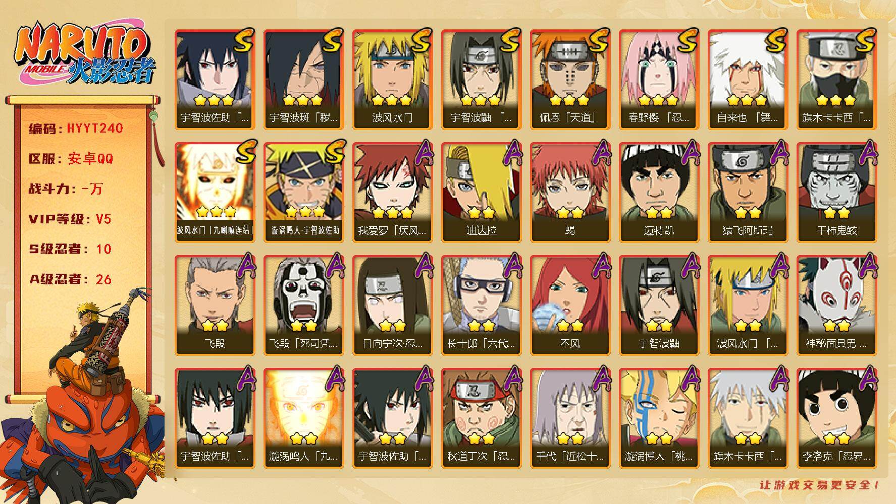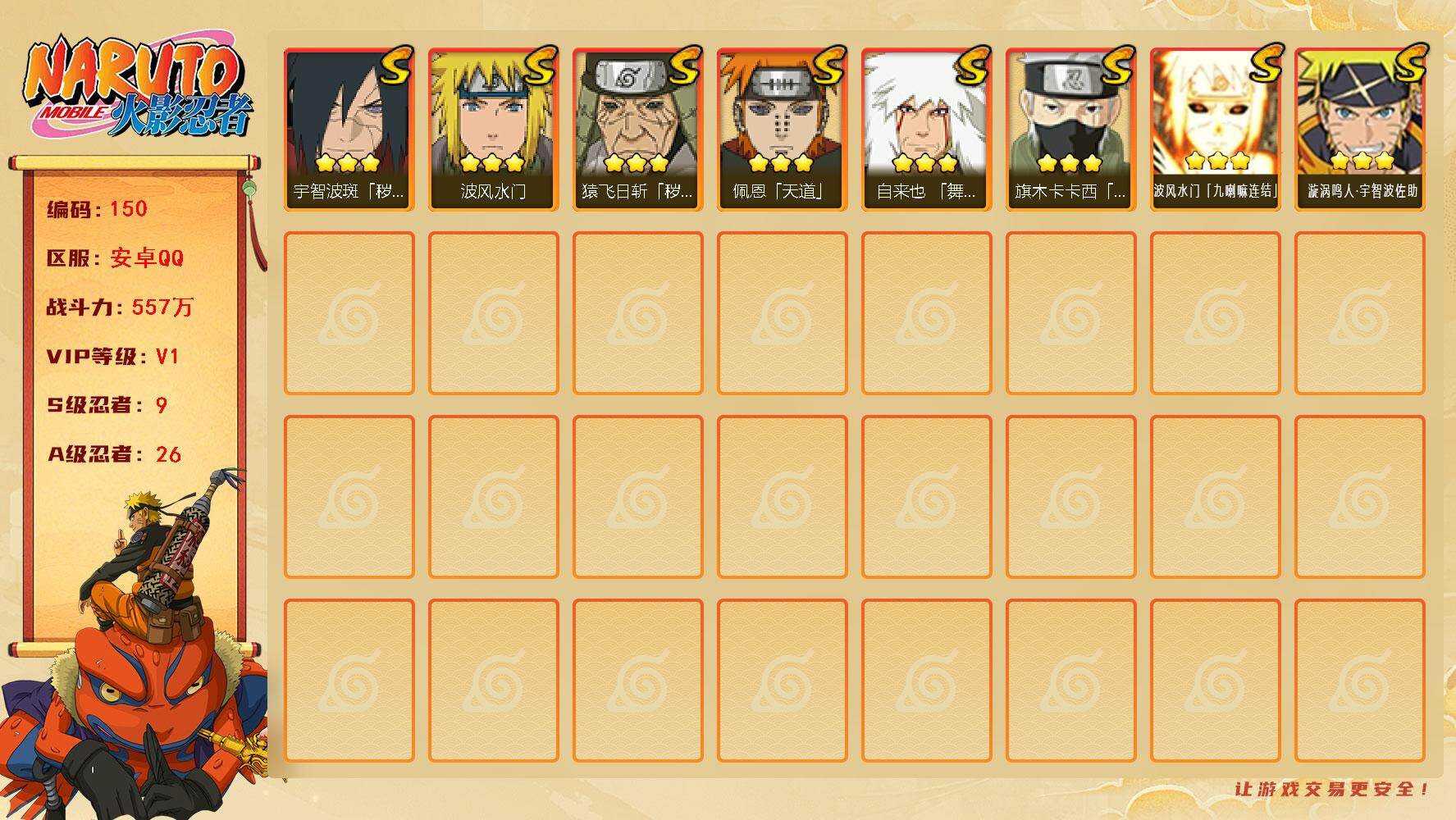 安卓qq/v11/成品小极品账号/1千4百万战力S忍者数:
