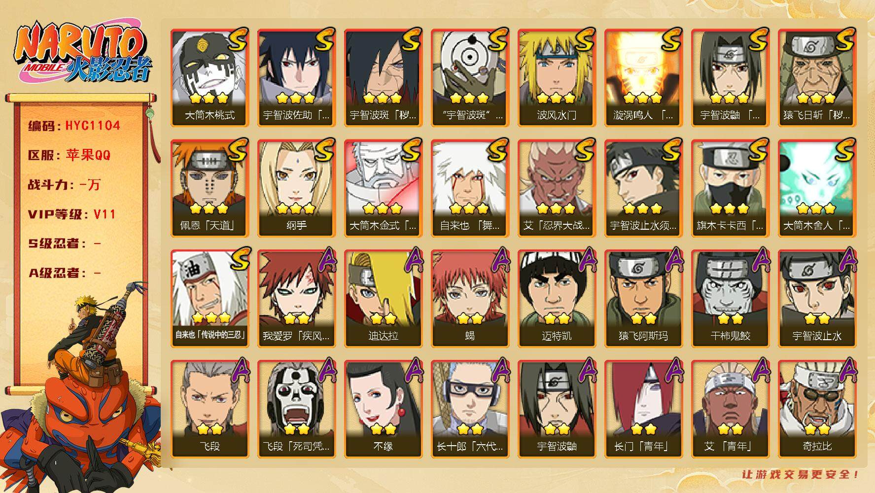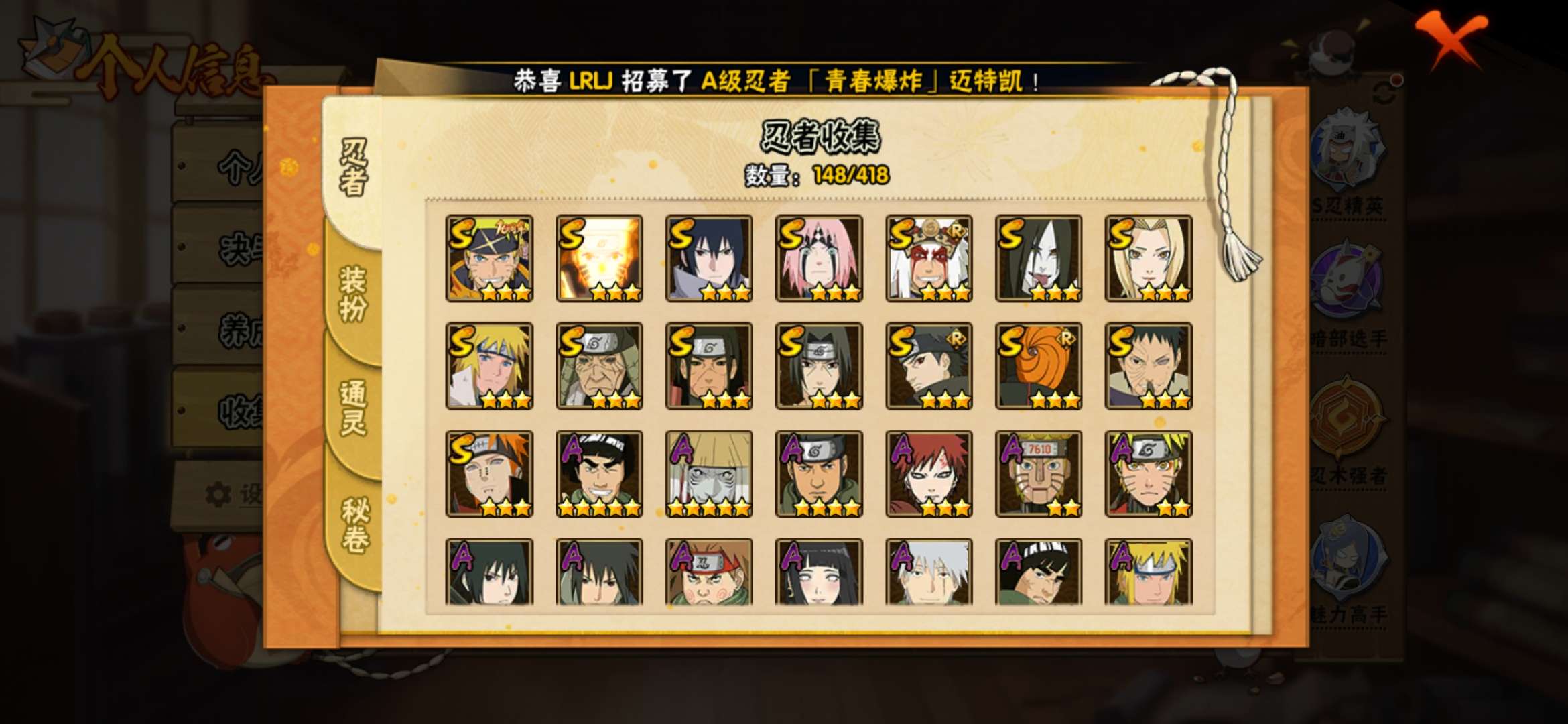 V 11,6个点卷a忍。三个忍法帖,一个98B忍,神农和秽土角度。有忍法帖密卷。忍战樱64片。