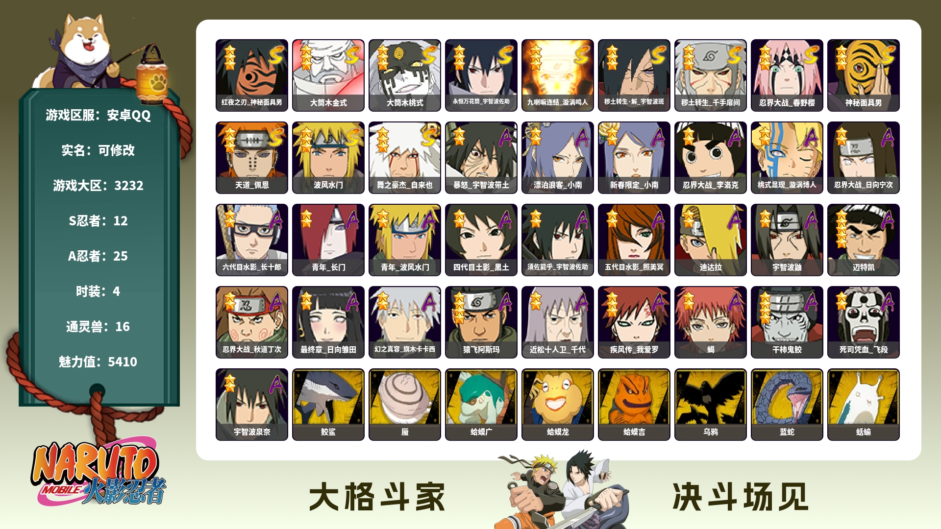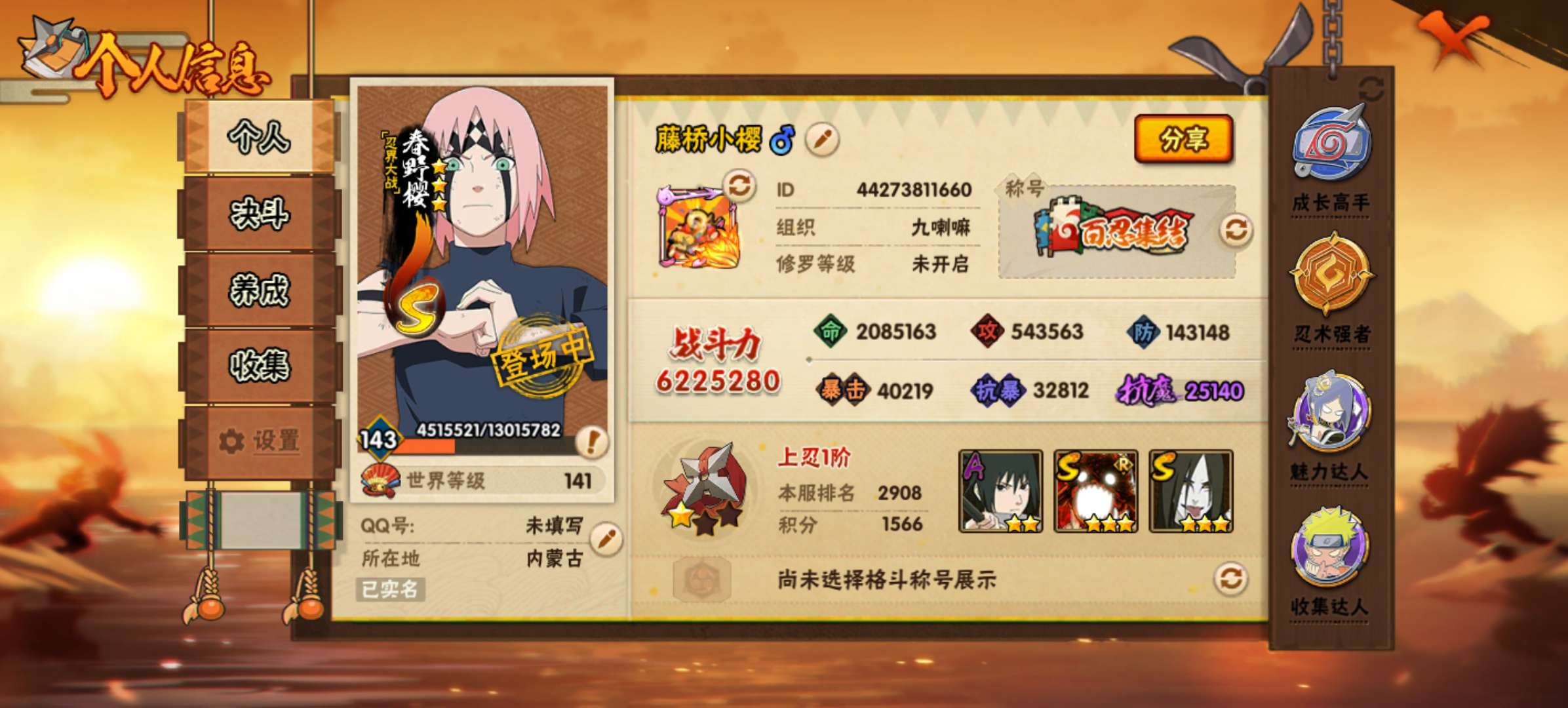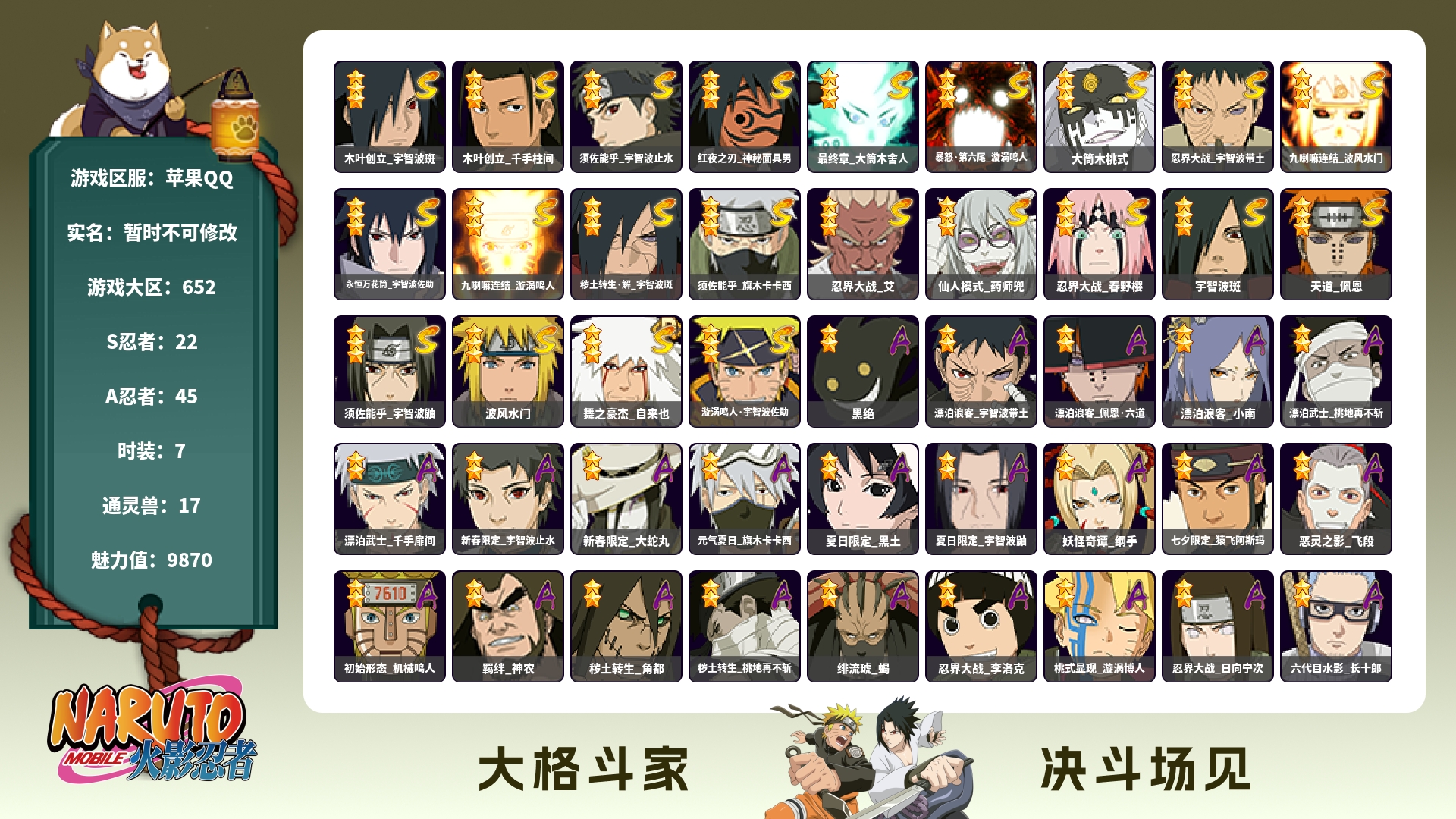 (可转苹果)640W战力舍人破面六尾15S+小孩31A战力6