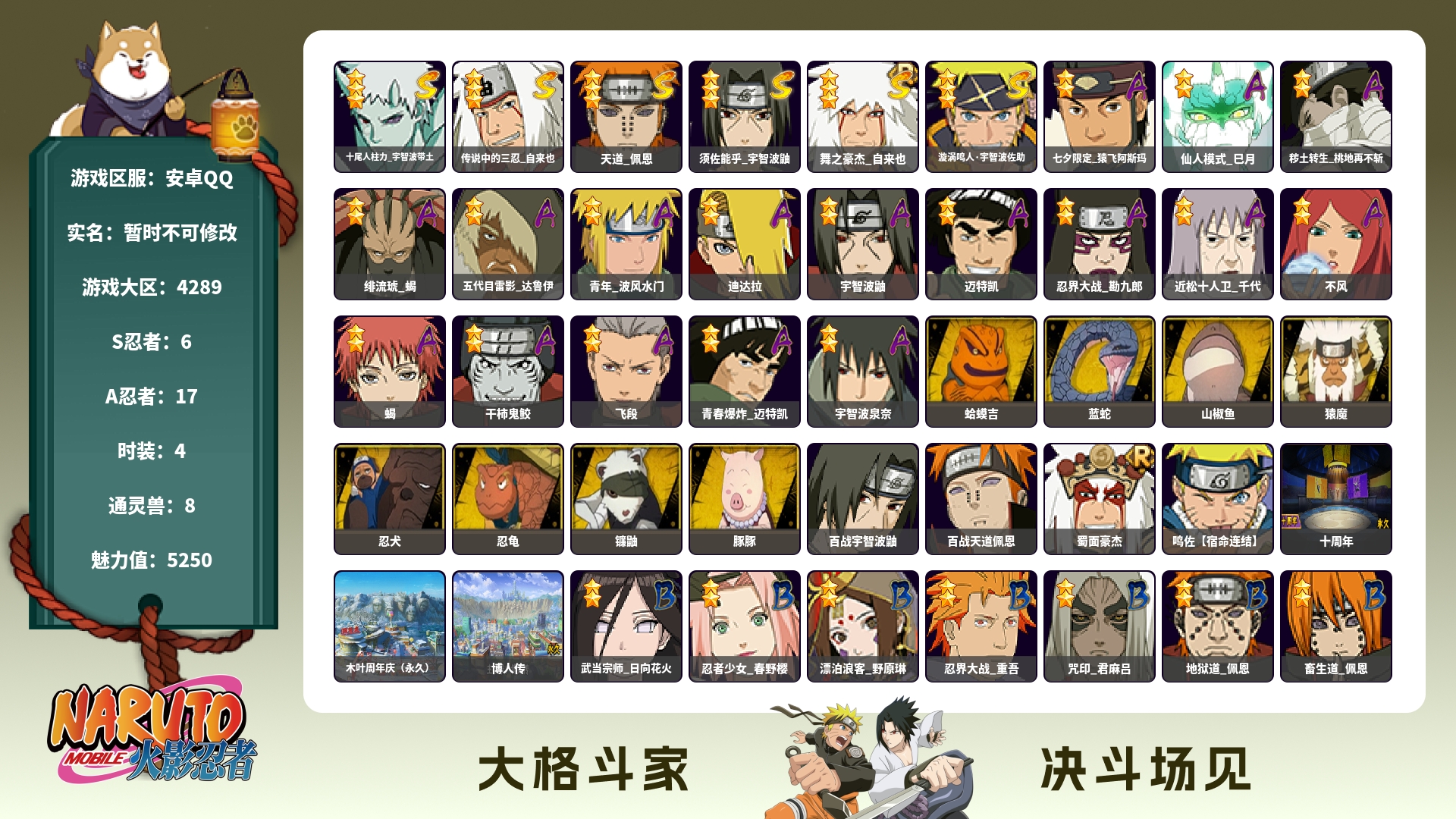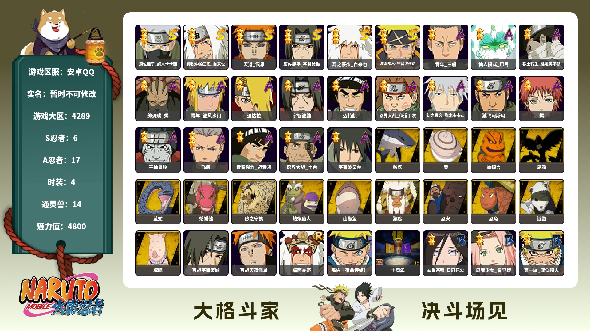 (可转苹果)418w须卡+三忍自来也6s+17a战力418账