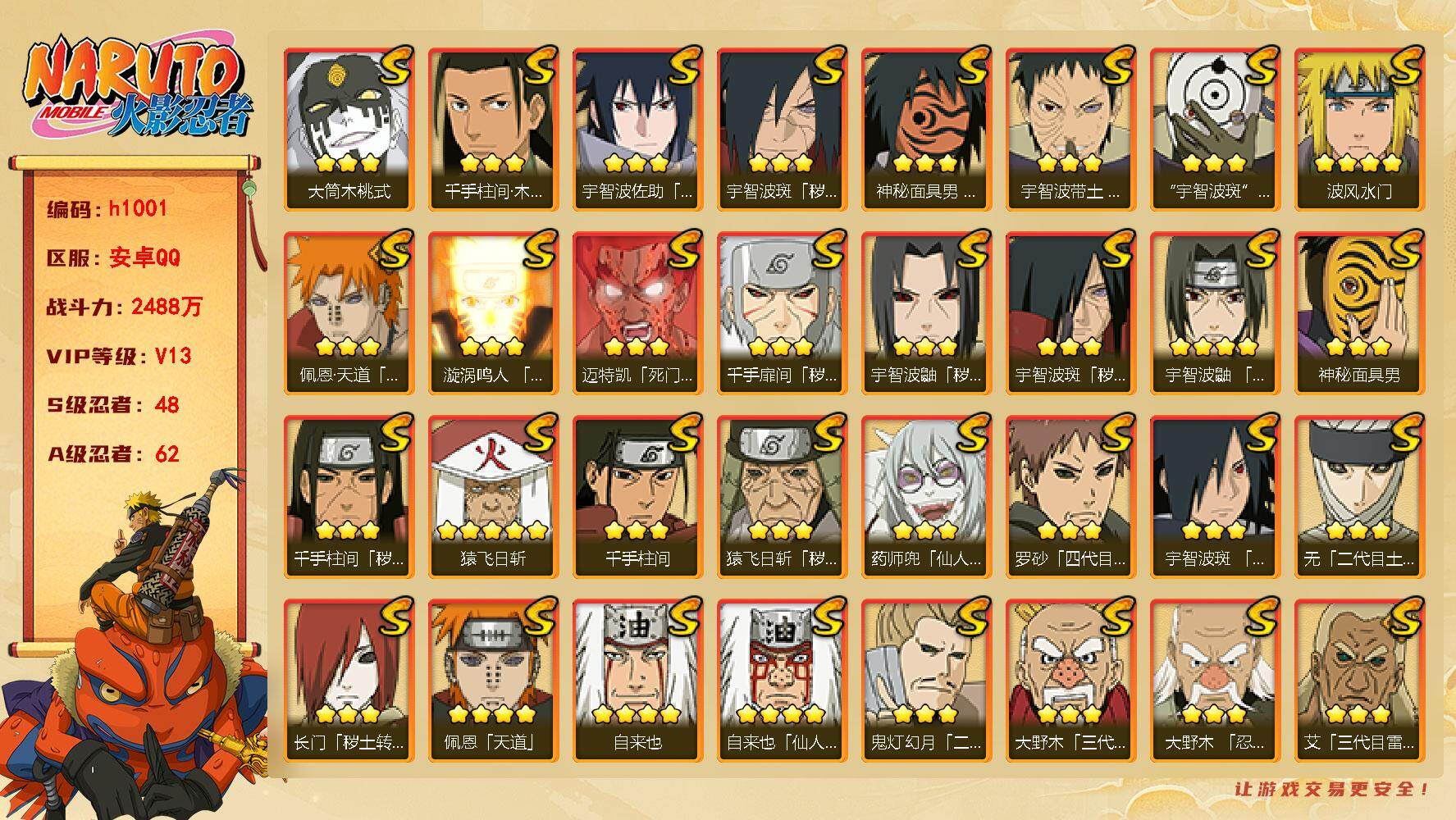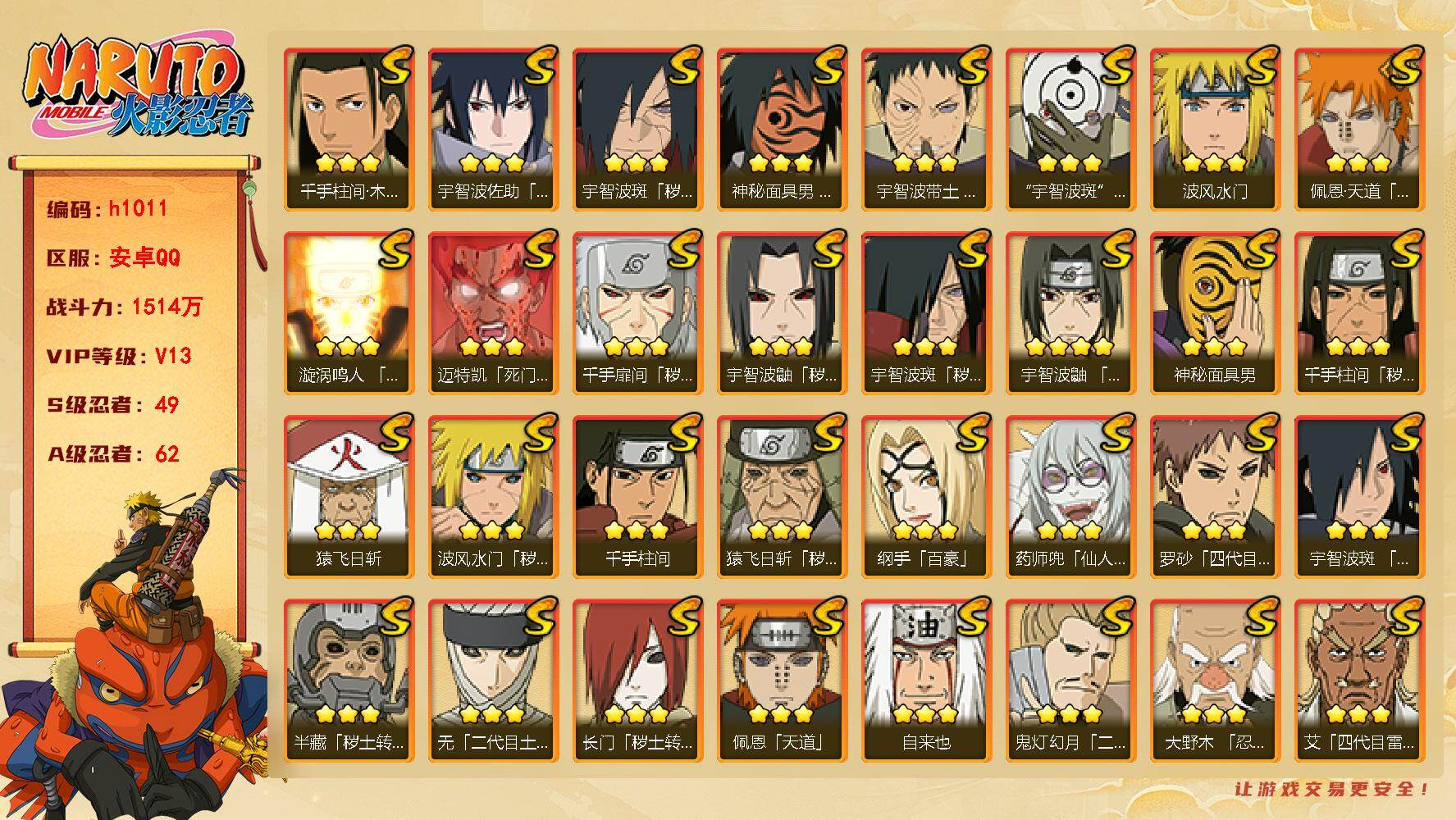 安卓QQ-成品火影号-800万战力-忍发帖基础班-S忍者数