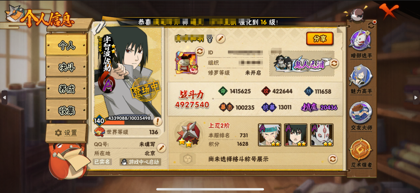 安卓QQ-新手入坑免肝免氪成品号-暴怒带土-S忍者数:8-