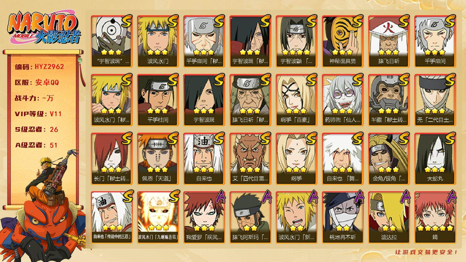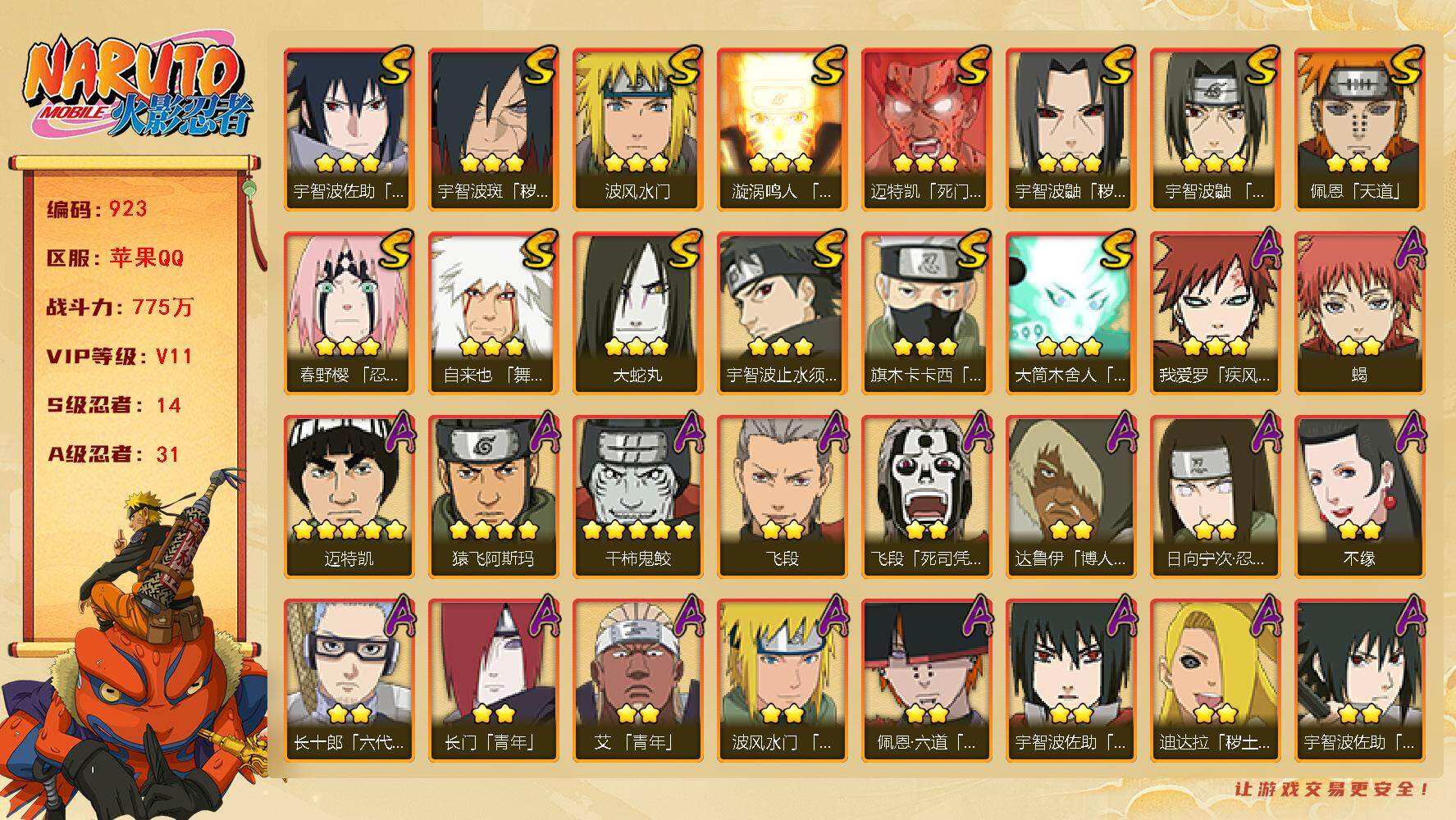 V11 775万战力 14S-31A 有熊猫 九喇嘛水门66片 创立柱间91片