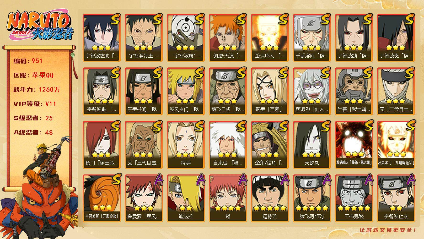 V11 1267万战力 21S-48A 有熊猫 卡卡西75片 忍战艾88片 秽