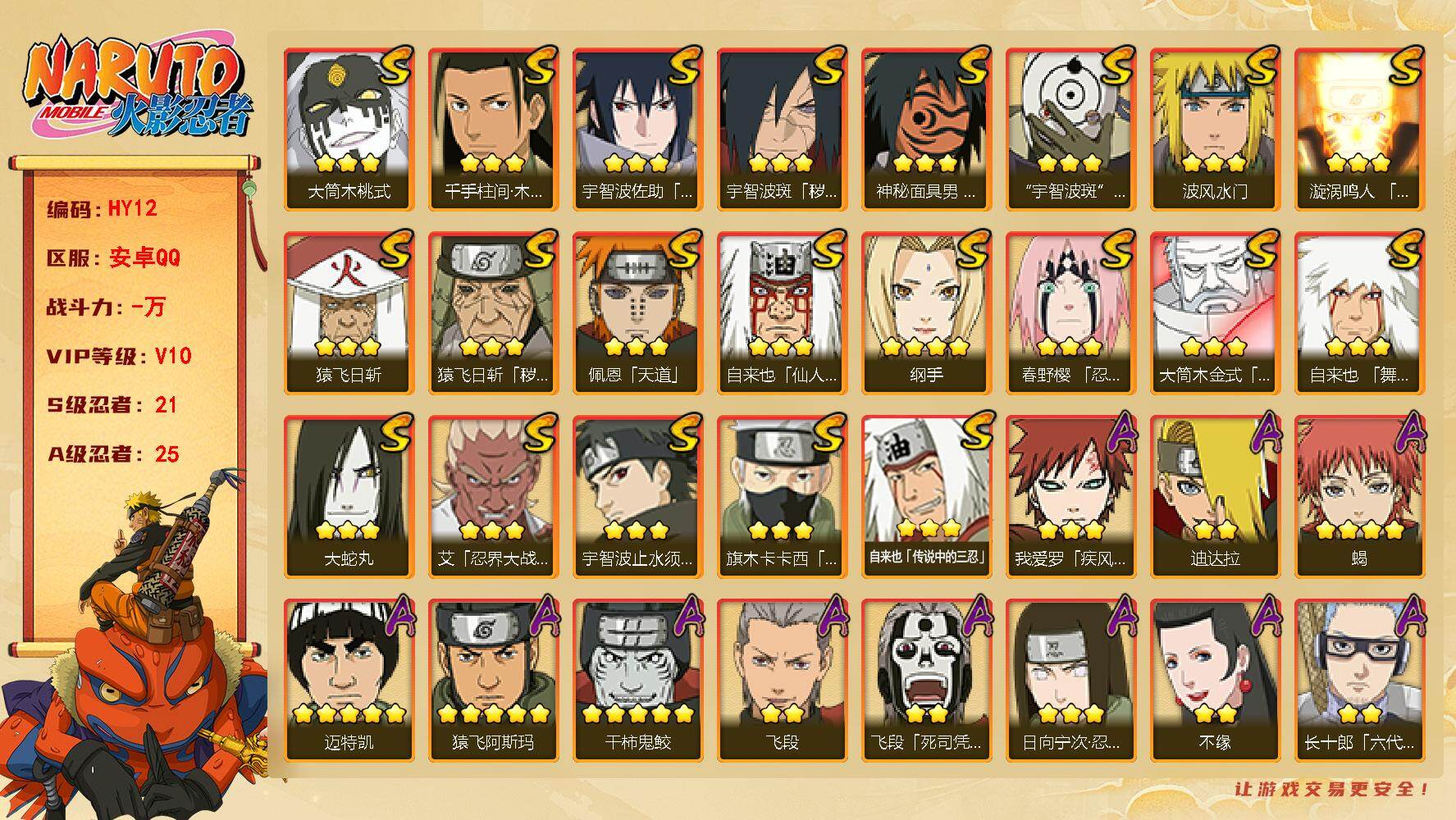 V11/S忍20/A忍35/3星宇智波斑「秽土转生」/3星纲手「百豪