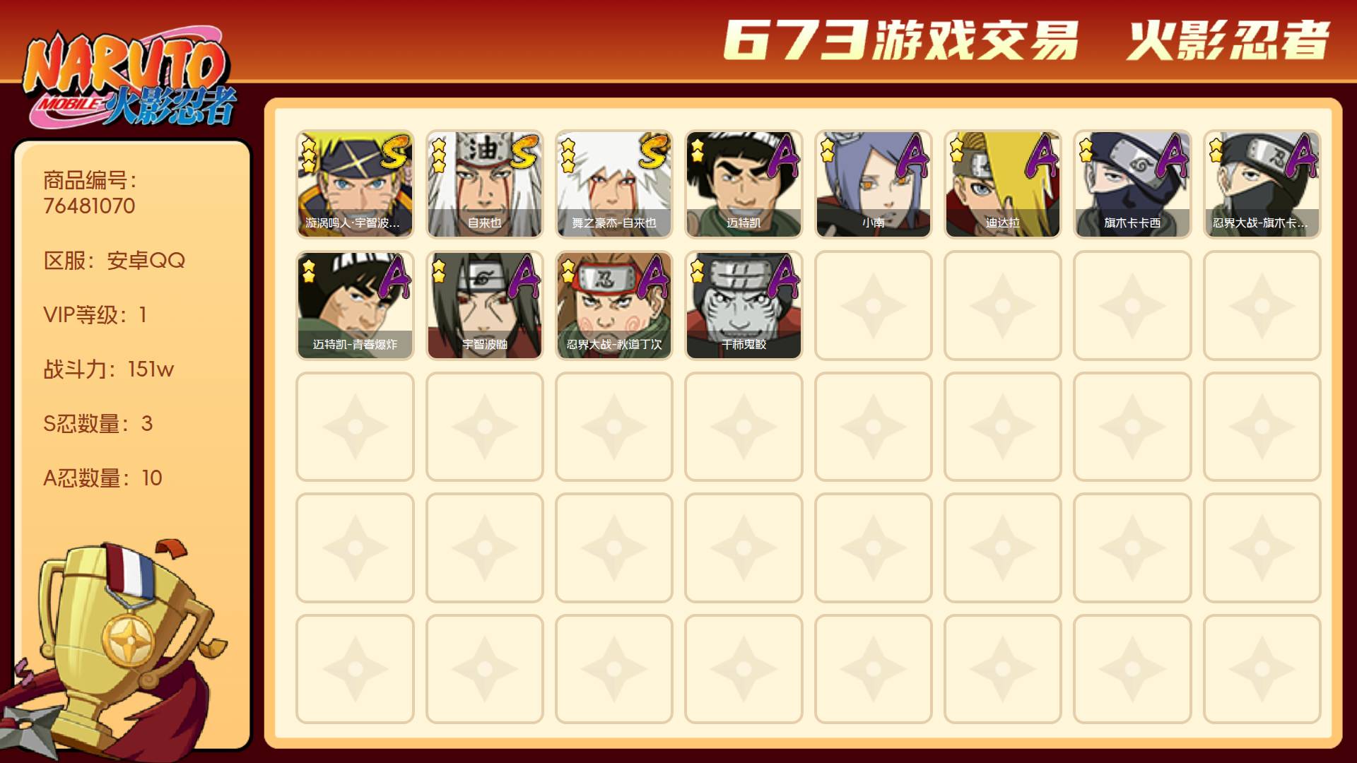 火影忍者帐号诚信出售