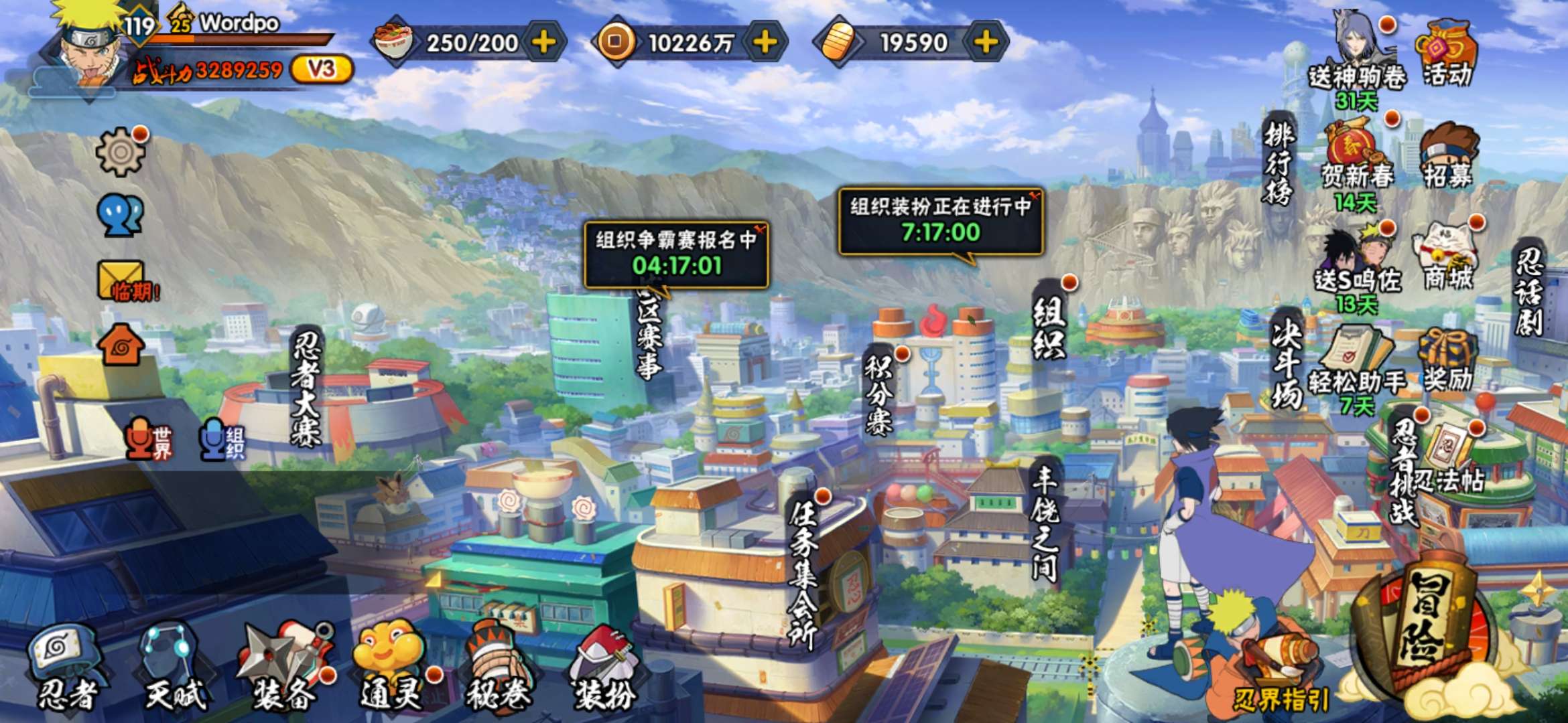 V7/战力498W/S忍6/A忍19/2星大野木「侠隐江湖」/3星波风水门「九喇嘛连结」/