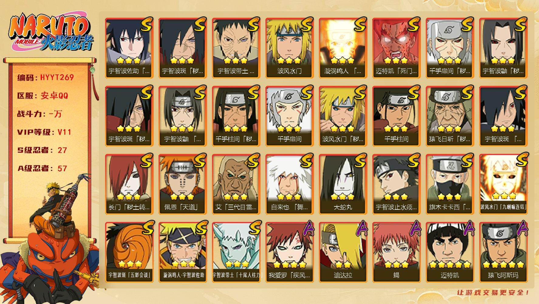 安卓QQ♦20万金币号+百战水门+川自+百战佩恩+百战鼬+青水♦
