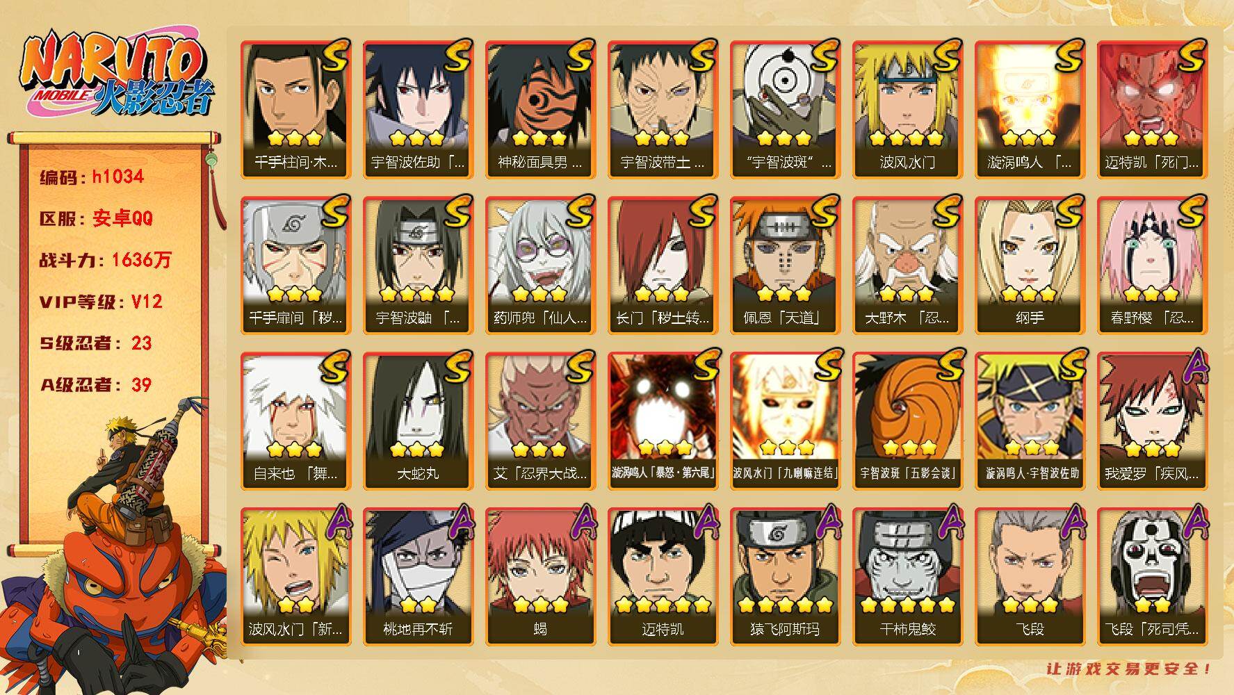 23S级忍者数-39A级忍者数【S级忍者】:长门「秽土转生」(3星),千手扉