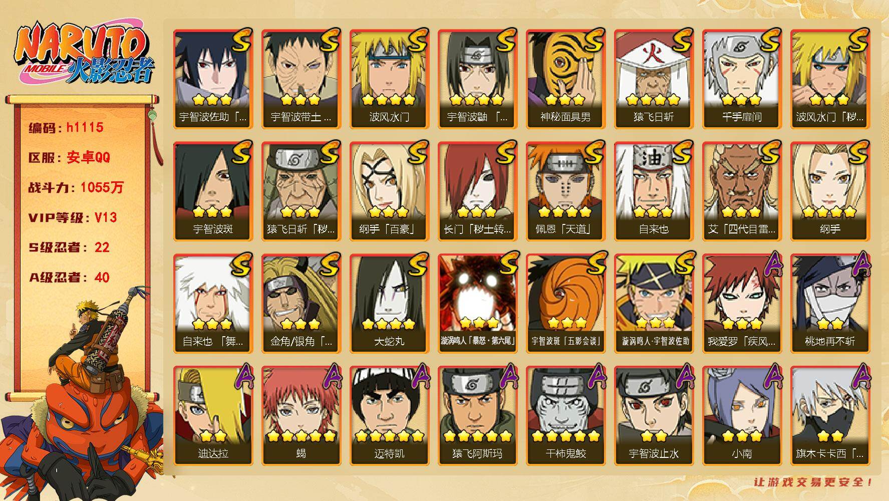 【HYZ3017】V12/战力1245W/S忍28/A忍40/通灵兽45/3星