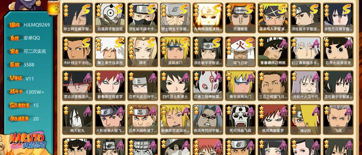 安卓QQ♦20万金币号+百战水门+川自+百战佩恩+百战鼬+青水