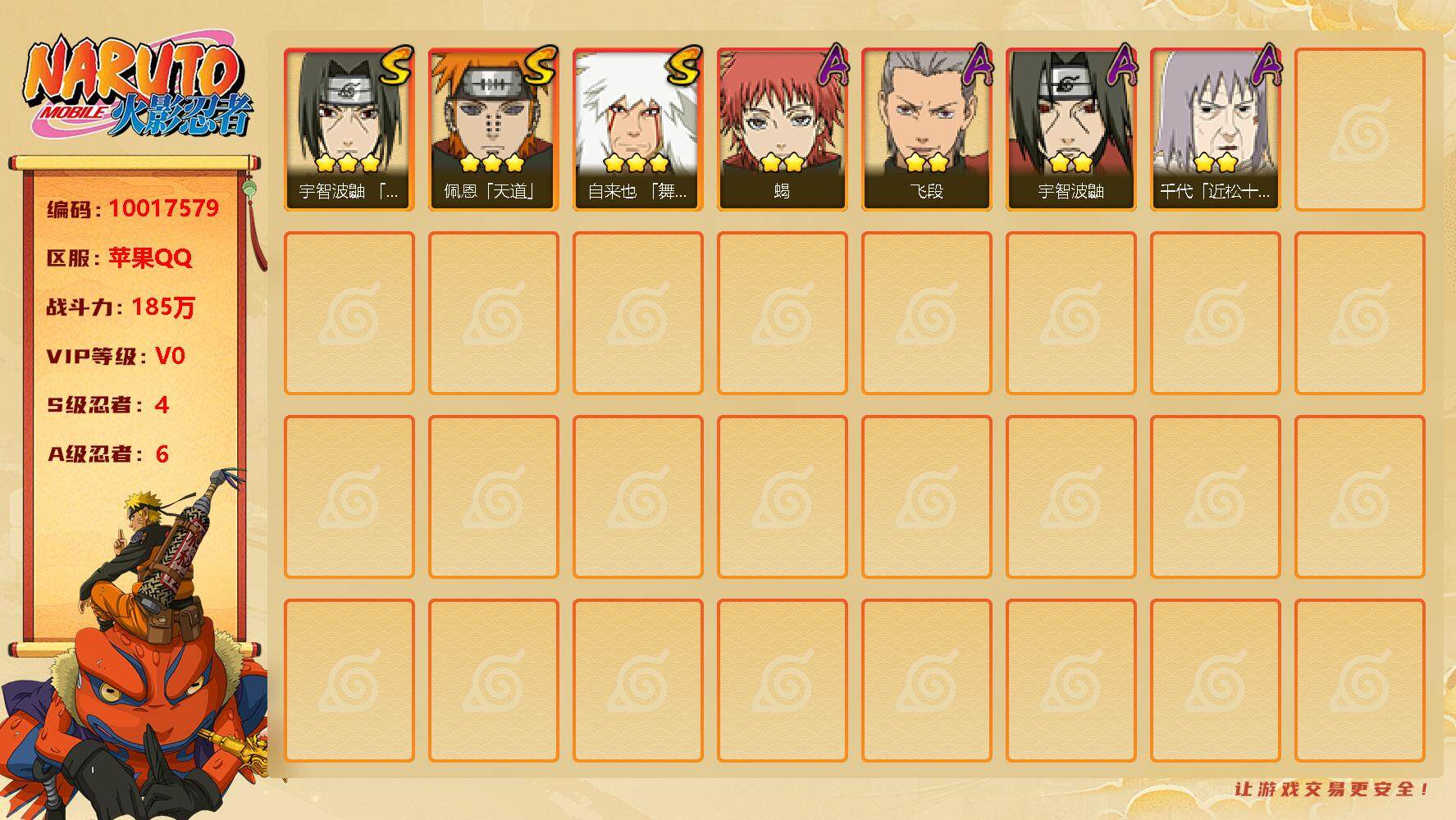 自玩号,v6,有25档忍法帖,自己退游了,出号